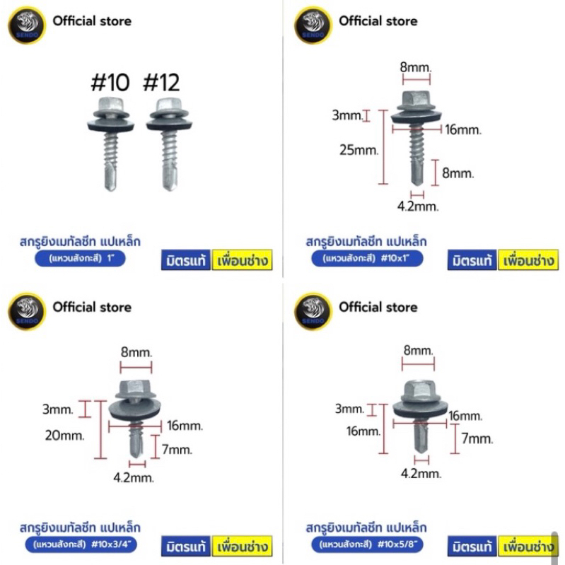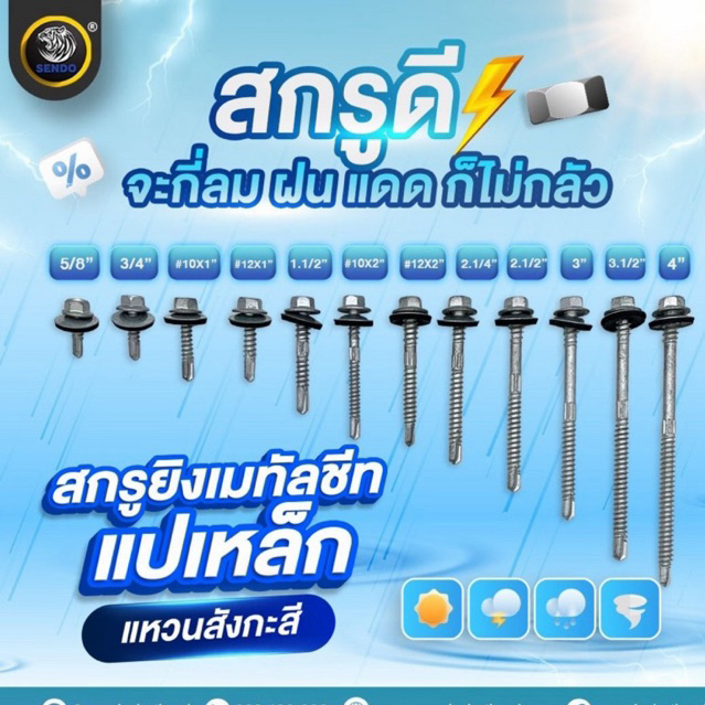 SENDOสกรูยิงเมทัลชีท แปเหล็ก(แหวนสังกะสี) สกรูยึดหลังคา แหวนกันรั่วกันซึม
