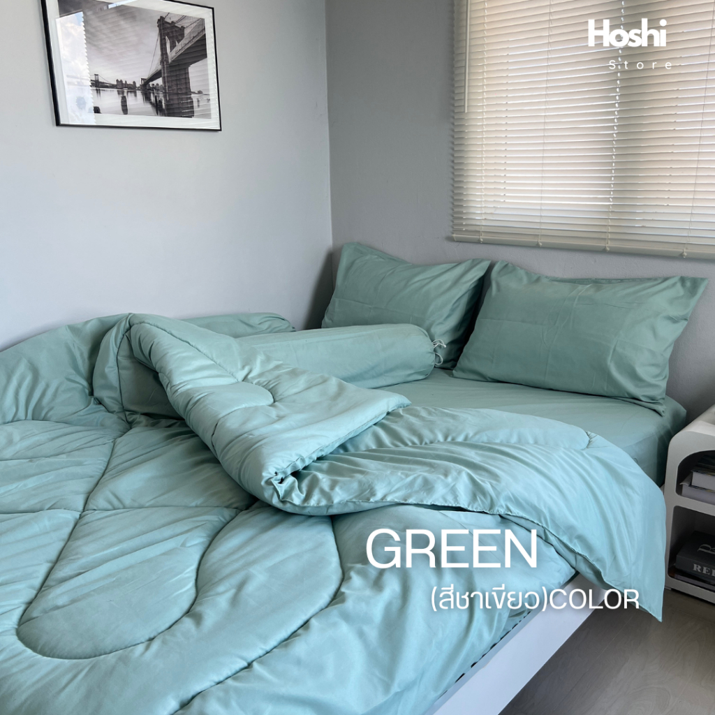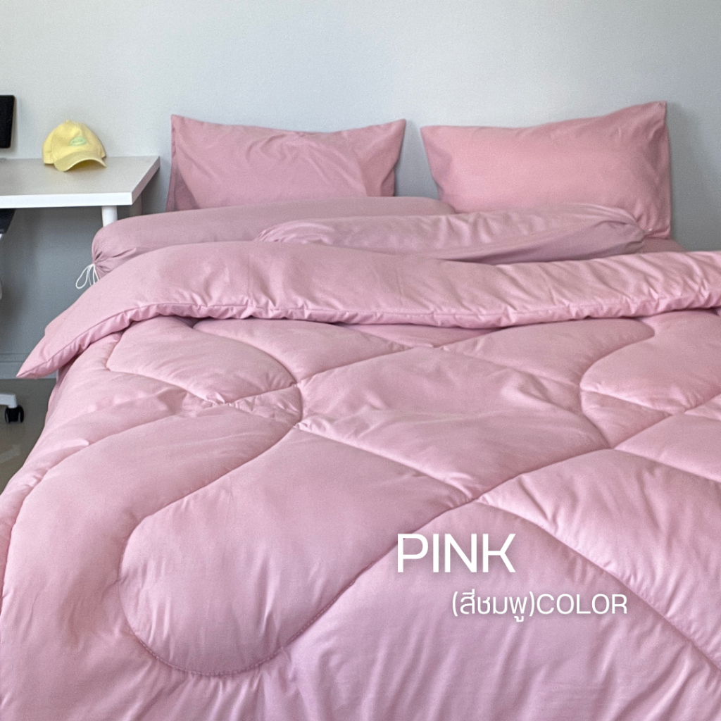 ชุดเครื่องนอน 6 ชิ้น ( ผ้านวม 6 ฟุต ) ผ้าcotton100% สีพื้น มินมอล มุมสูง 11 นิ้ว