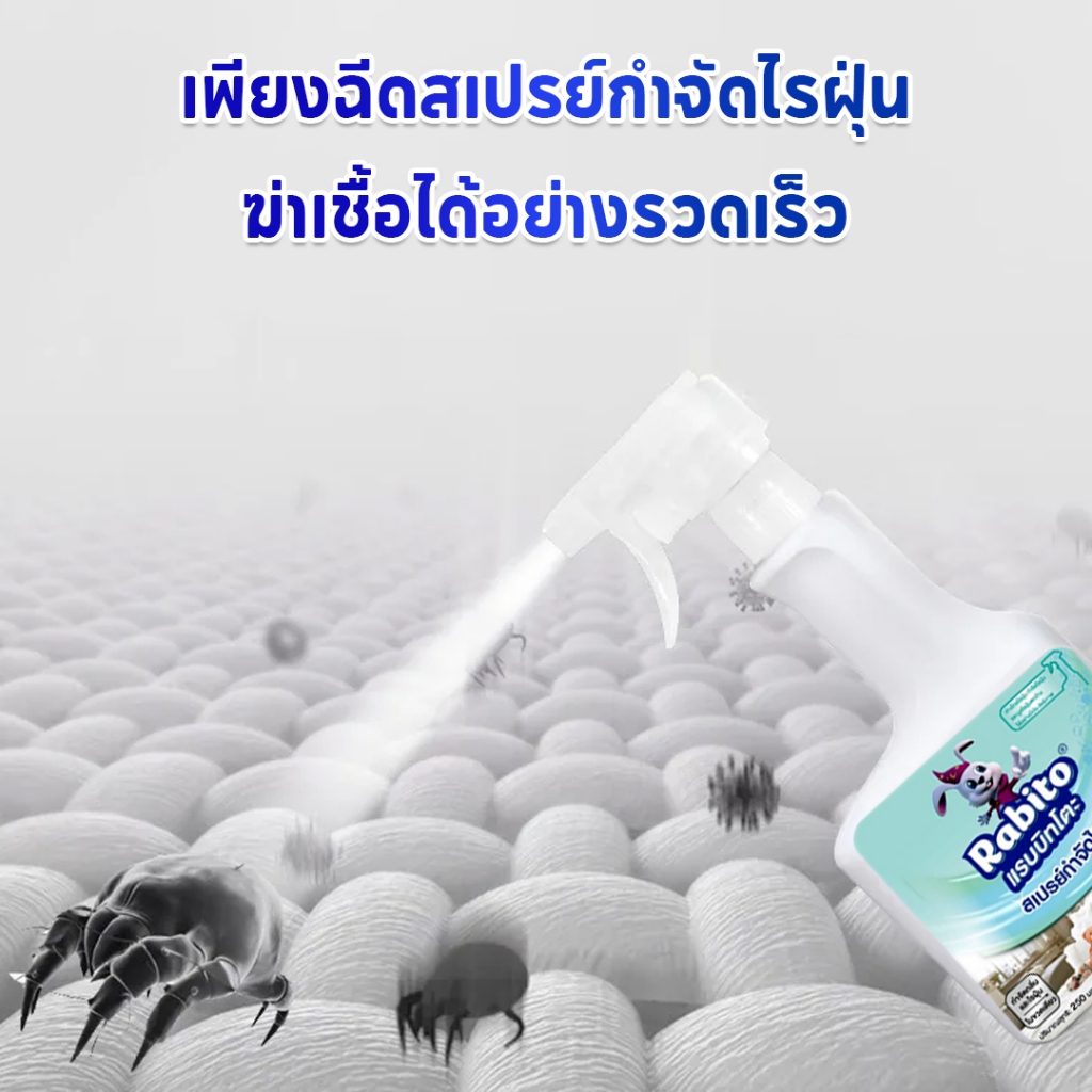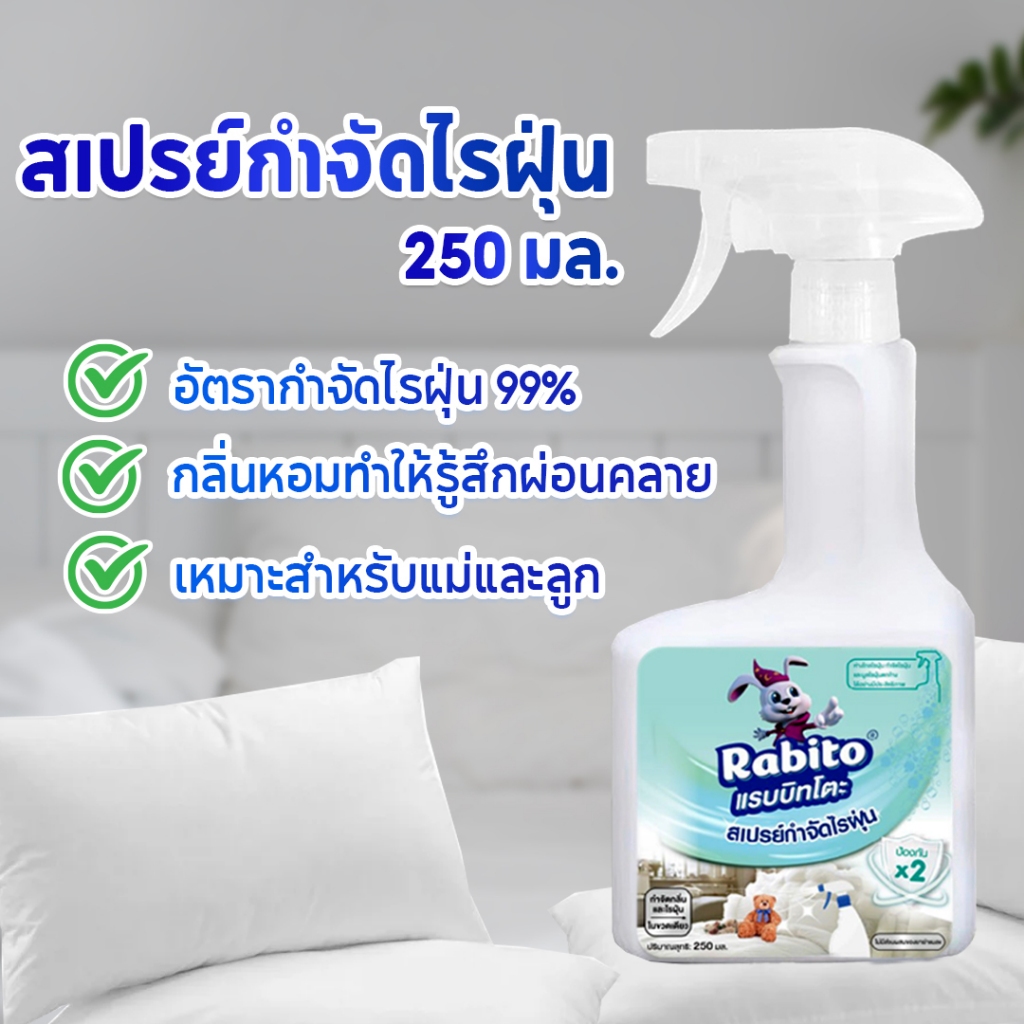 Rabito กำจัดไรไรฝุ่น สเปรย์กำจัดไรฝุ่น ป้องกันไรฝุ่น ฆ่าไรฝุ่น ขจัดกลิ่น ไม่พึงประสงค์ 250มล. F88