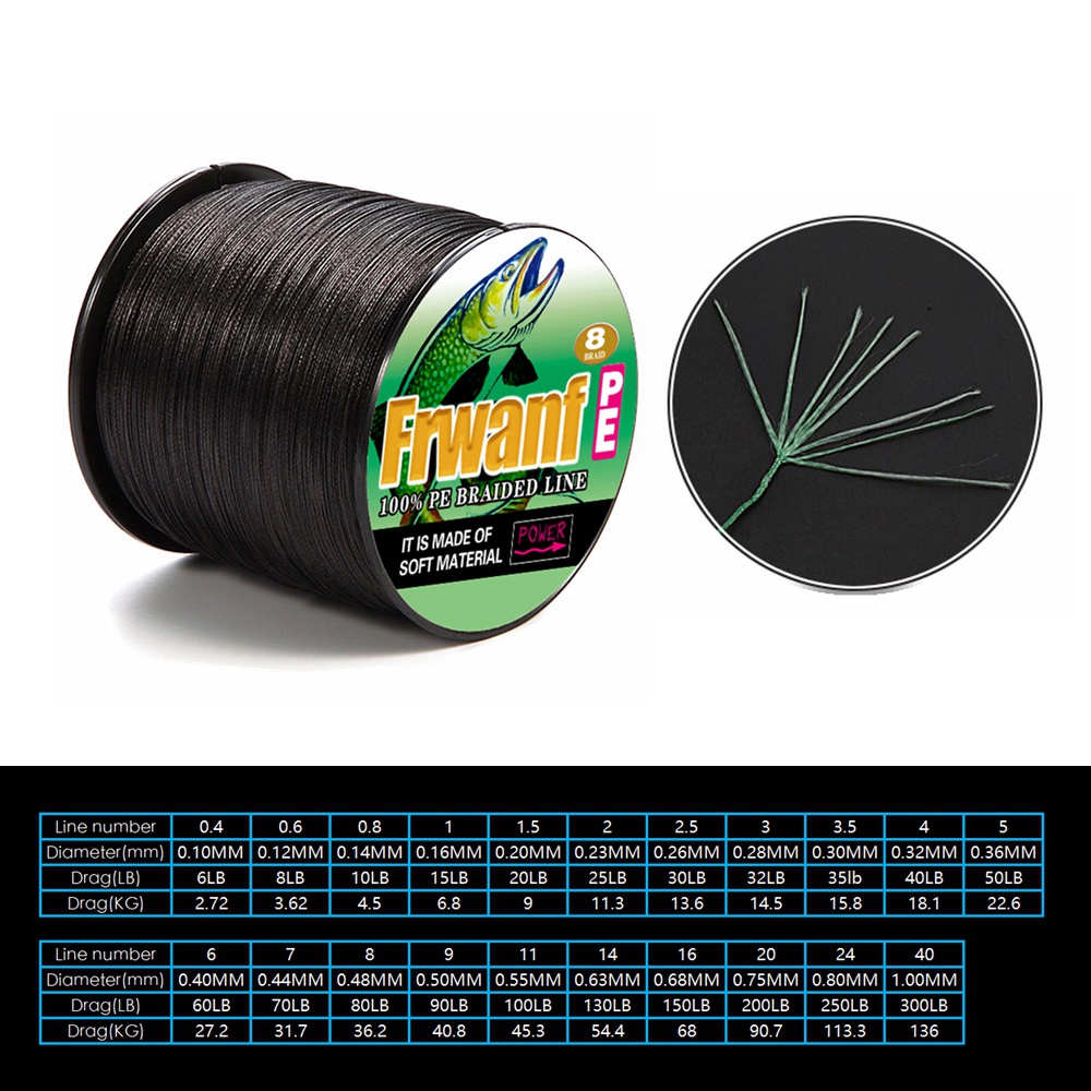 Frwanf สายเอ็นตกปลาถัก PE X8 300 ม. 6-300LB สีดํา 8 เส้น
