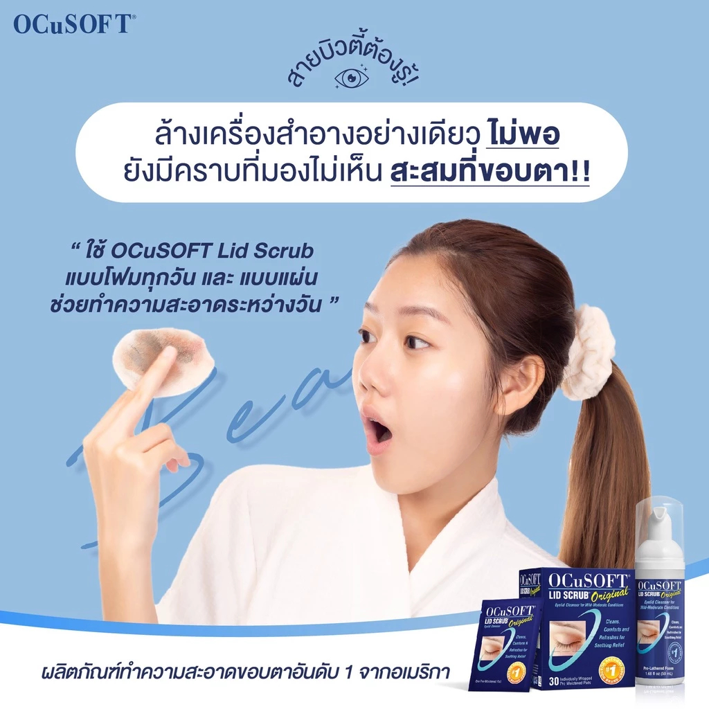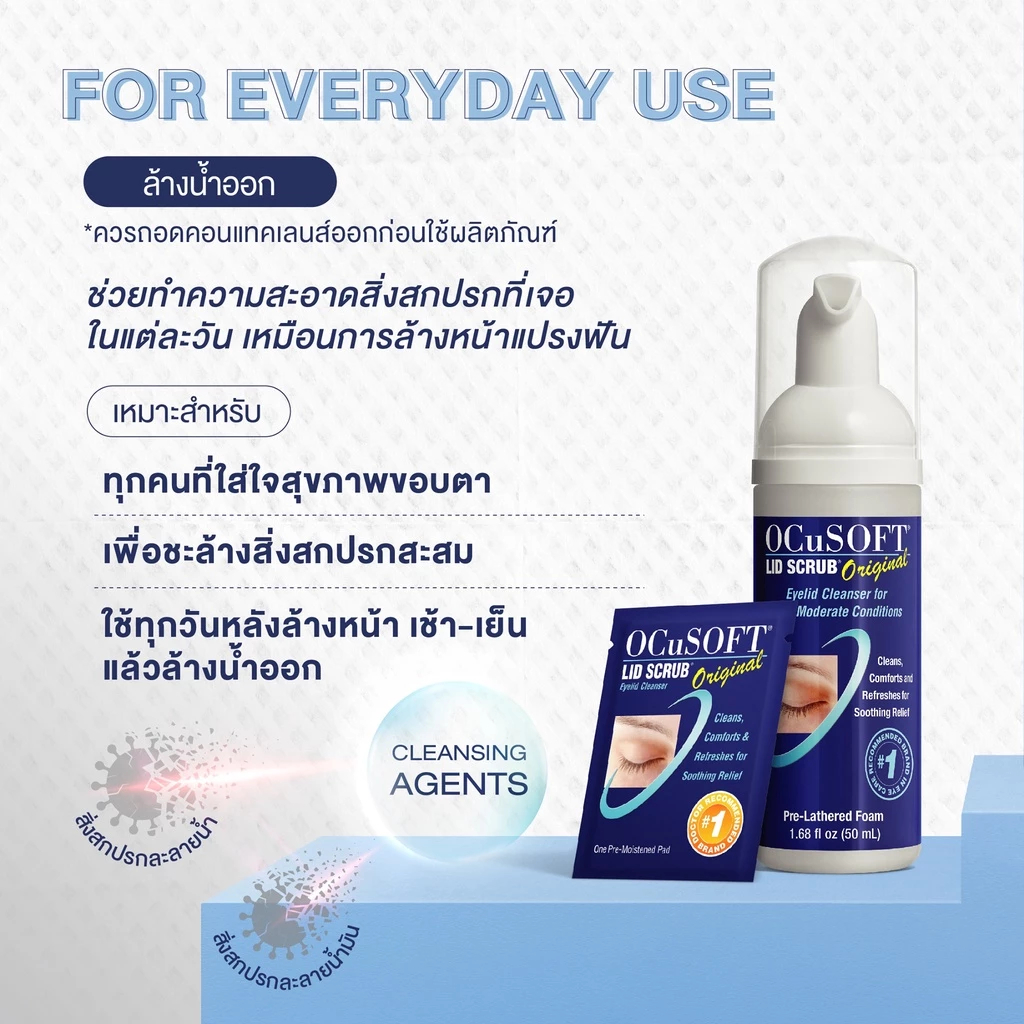 Ocusoft Lid Scrub Foam 50ml (น้ำเงิน) และOcusoft Lid Scrub PLUS 50ml (ฟ้า) ทำความสะอาดเปลือกตา