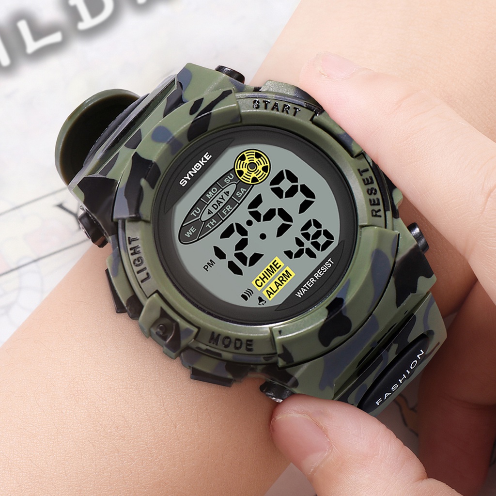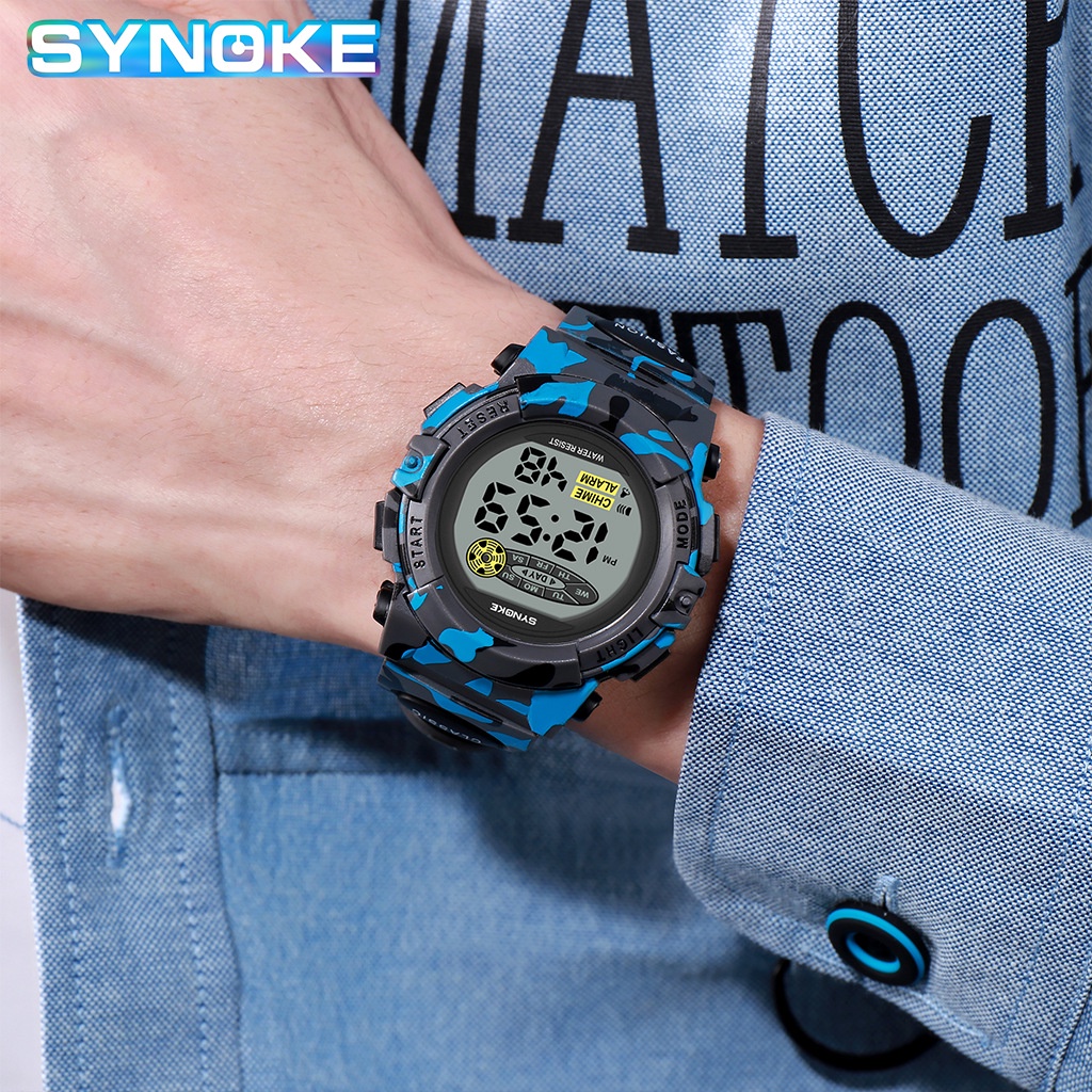 SYNOKE นาฬิกาผู้ชายมัลติฟังก์ชั่นส่องสว่าง LED ดิจิตอลกันน้ำพรางกลางแจ้งกันน้ำกีฬานาฬิกา