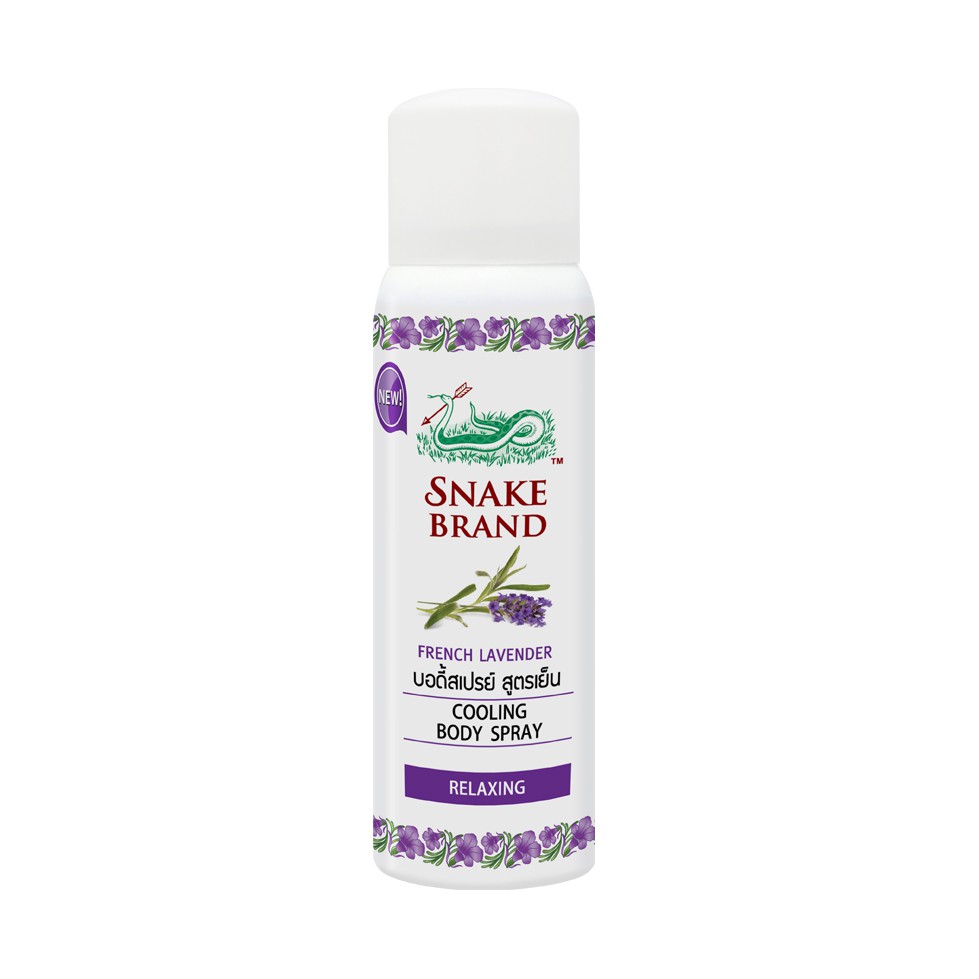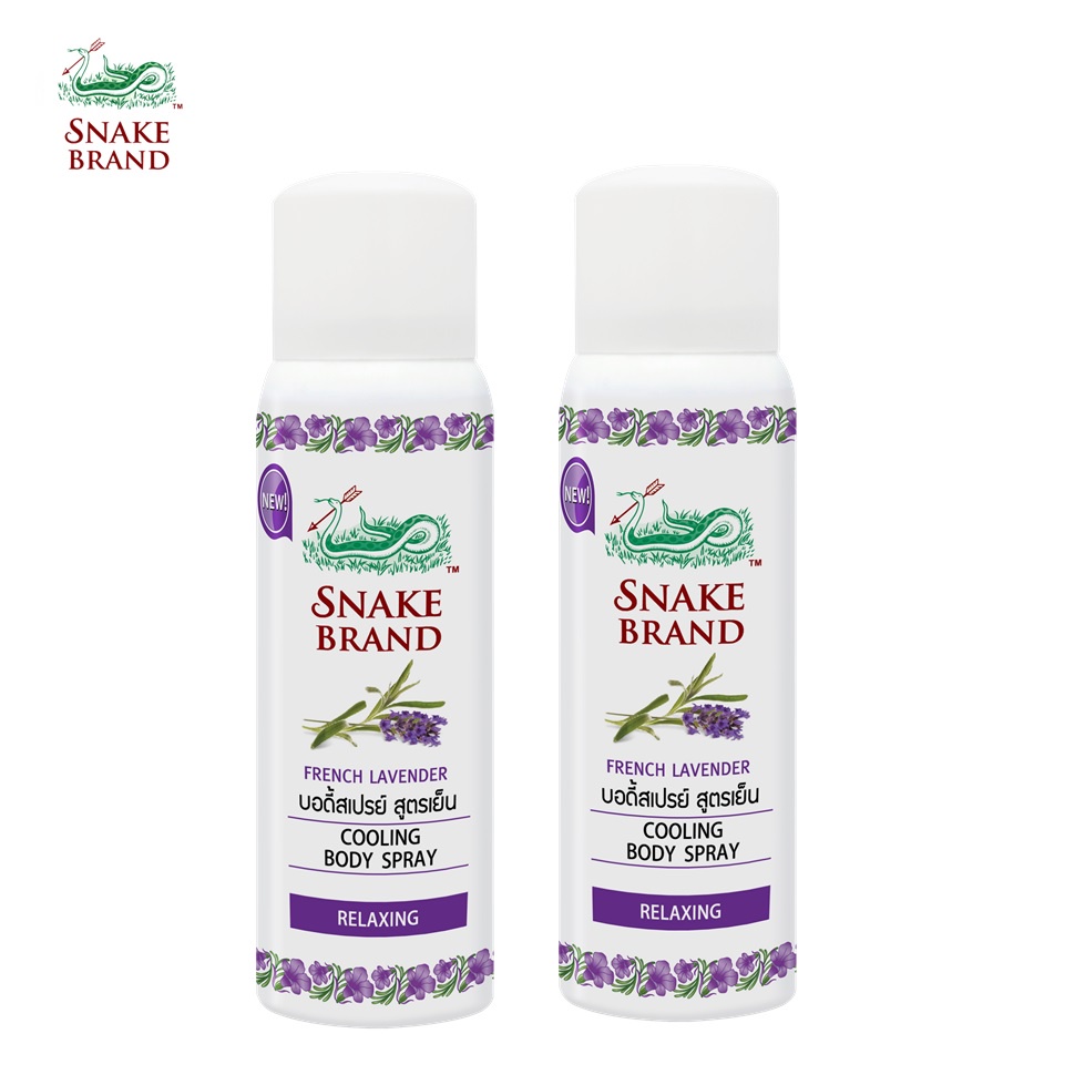Snake Brand ตรางู คูลลิ่ง บอดี้สเปรย์ สูตรเย็น รีแล็กซิ่ง กลิ่นลาเวนเดอร์ ออยล์ 50 มล. 2 กระป๋อง (สเปรย์เย็น, บอดี้สเปรย