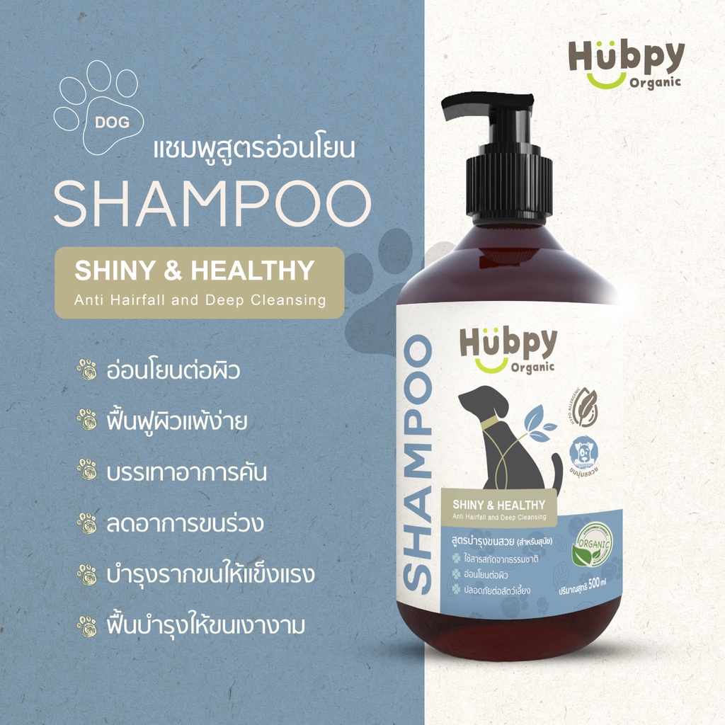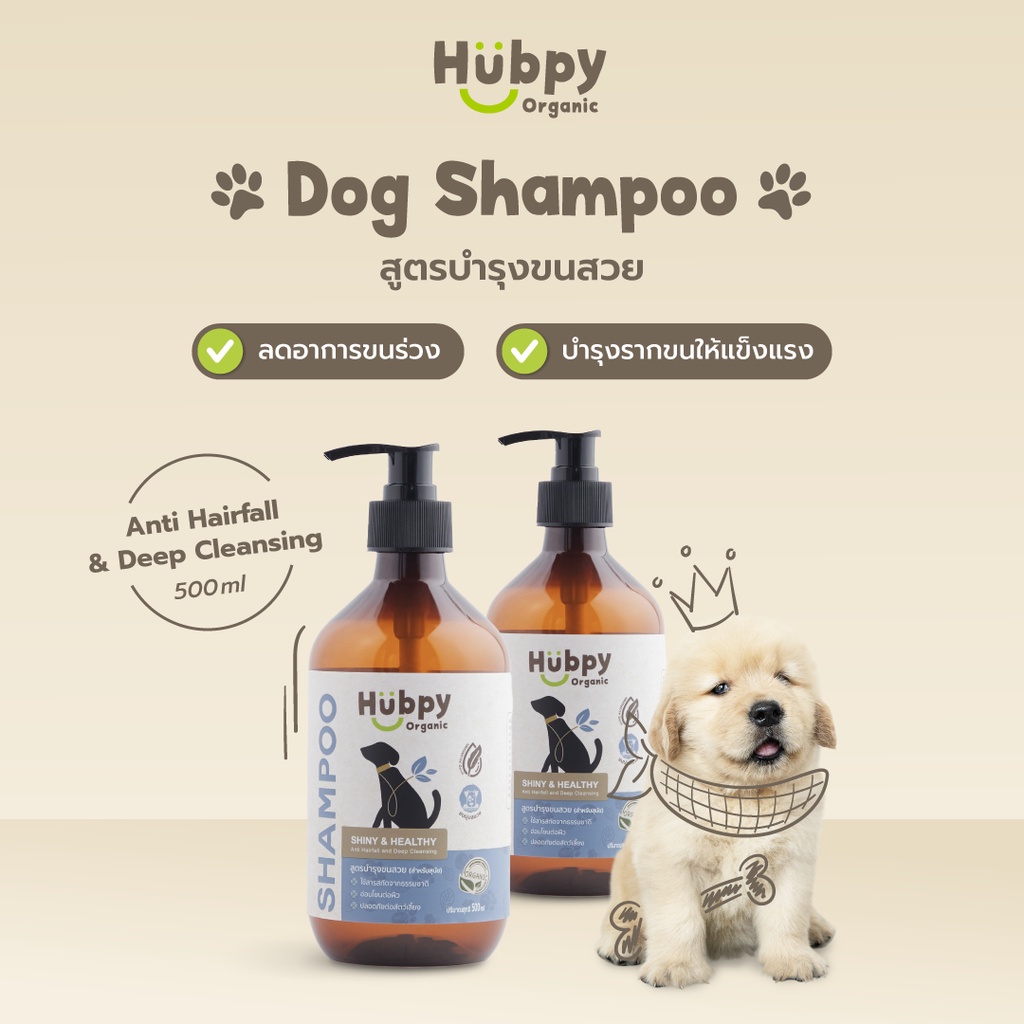 Hubpy Organic แชมพูสุนัข ออร์แกนิค สูตรบำรุงขนสวย ลดขนหลุดร่วง อย่างอ่อนโยน DOG Shampoo 500 ml