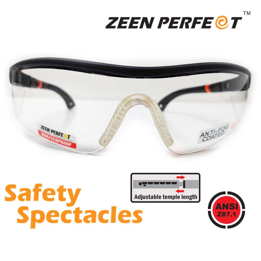 ZEEN PERFECT แว่นเซฟตี้ แว่นนิรภัย Safety glasses, แว่นกันลม No. 92017 ขาปรับระดับได้ ป้องกัน UV400 มาตราฐาน ANSI Z87.1