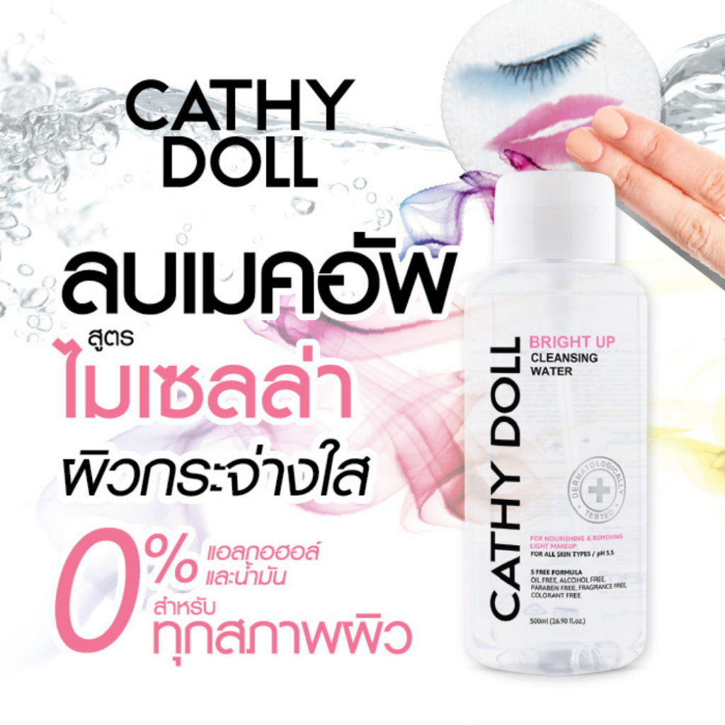 Cathy Doll ไบร์ทอัพคลีนซิ่งวอเตอร์ 500ml (คลีนซิ่ง ล้างเครื่องสำอาง ลบเมคอัพ)