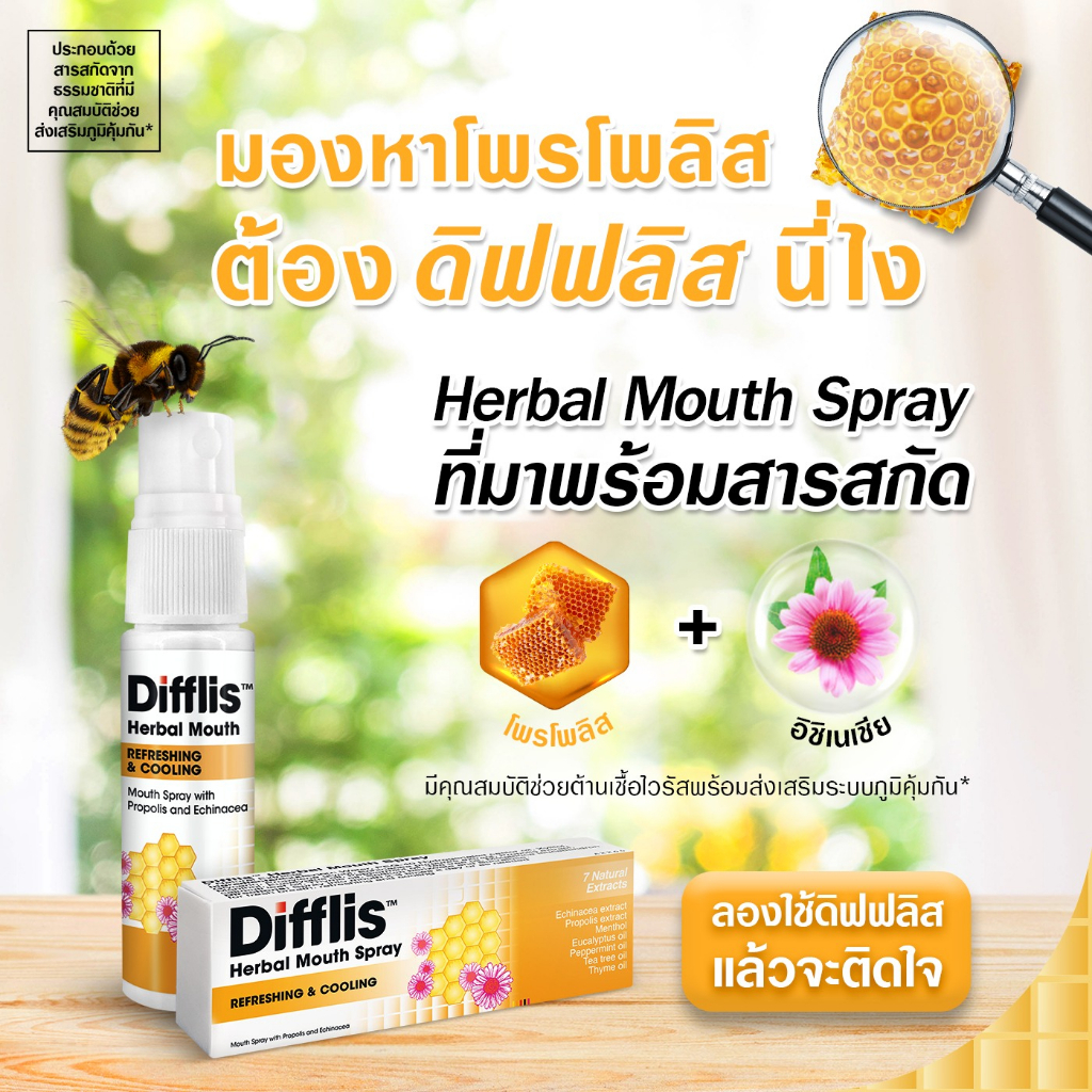 [3 หลอด] สเปรย์พ่นปาก Difflis Herbal Mouth Spray ดิฟฟลิส เฮอร์เบิ้ล เมาท์ สเปรย์ [15 ml.]