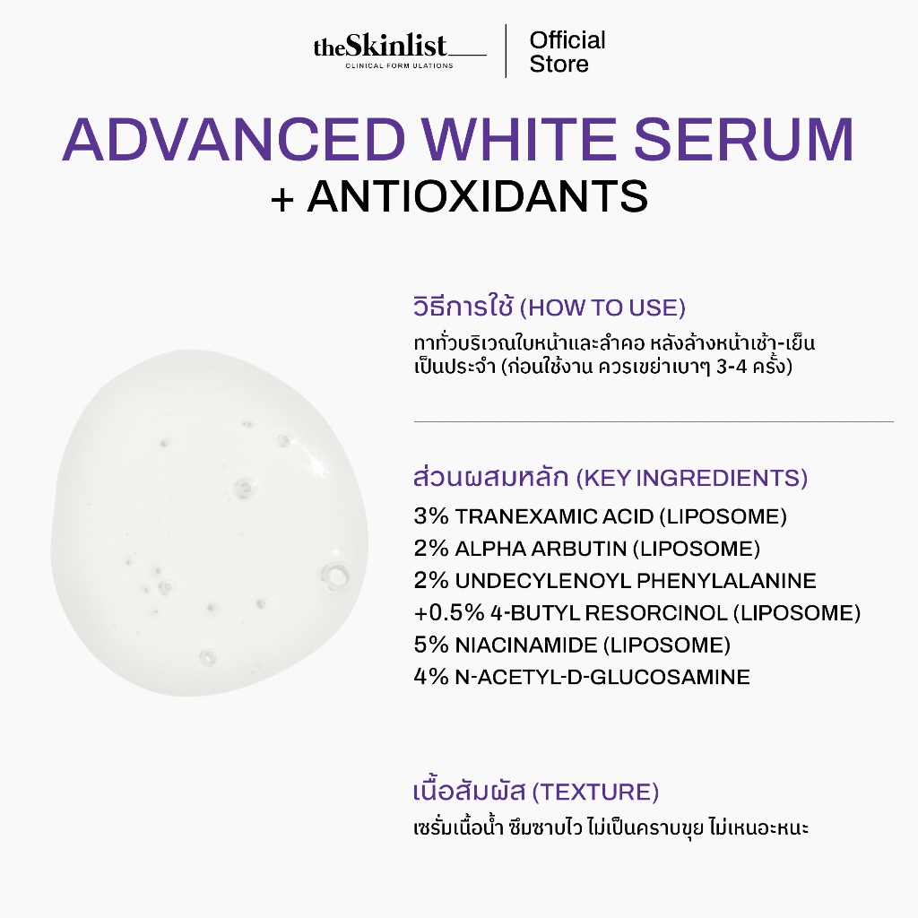 [Set ฝ้า/รอยสิว/จุดด่างดำ] - The Skinlist Advanced White Serum + Facial Solution Exfoliator