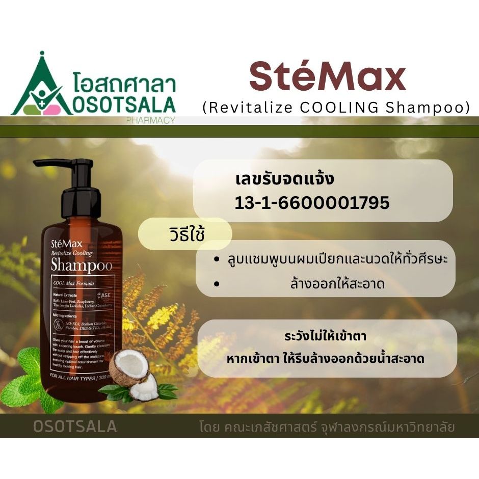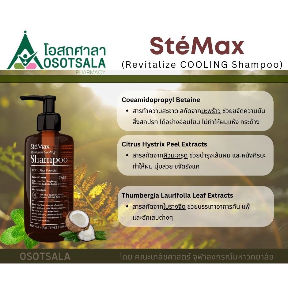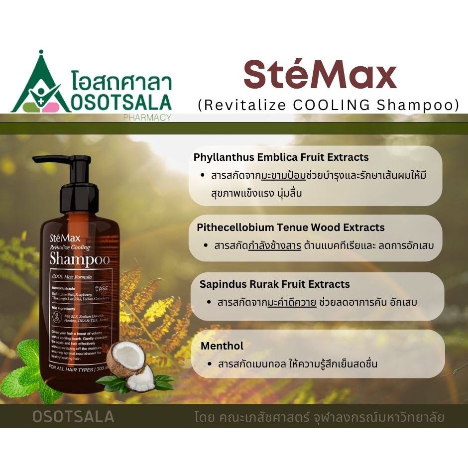 Cuphar SteMax Revitalize Cooling Shampoo แชมพูสารสกัดสมุนไพรธรรมชาติสูตรเย็นจากงานวิจัยคณะเภสัชฯจุฬา