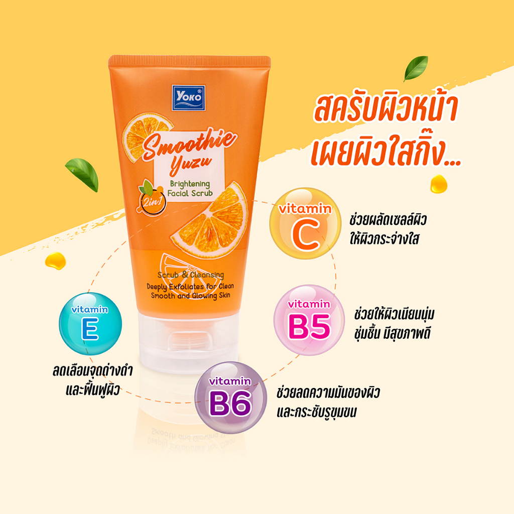 [EXP.08/2026] โยโกะ สมูทตี้ ยูซุ ไบรท์เทนนิ่ง เดลิ เฟเชียล สครับ (ผลิตภัณฑ์ทำความสะอาดผิวหน้า) 100ml