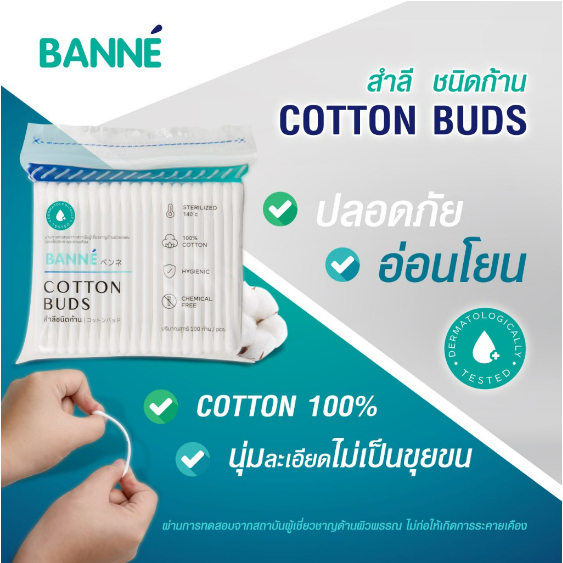 Banne Cotton Buds สำลีก้าน 100ก้าน (ซื้อ1แถม1)