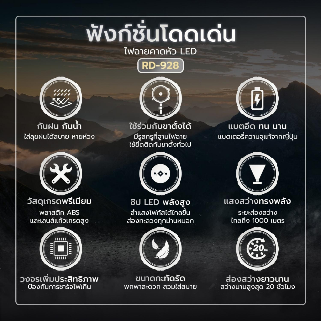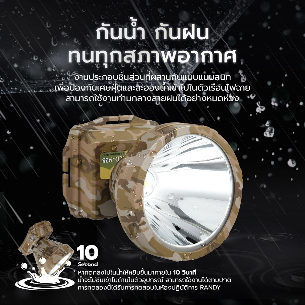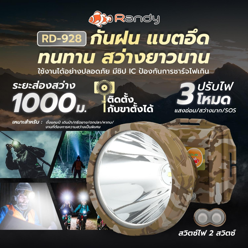 Randy ไฟฉายคาดหัว กันน้ำ ไฟฉาย แบตเตอรี่ญี่ปุ่น ไฟคาดหัว ส่องสว่างระยะไกล LED หน้าไฟ ปรับไฟได้2ระดับ ไฟส่องกบ แบตอึด
