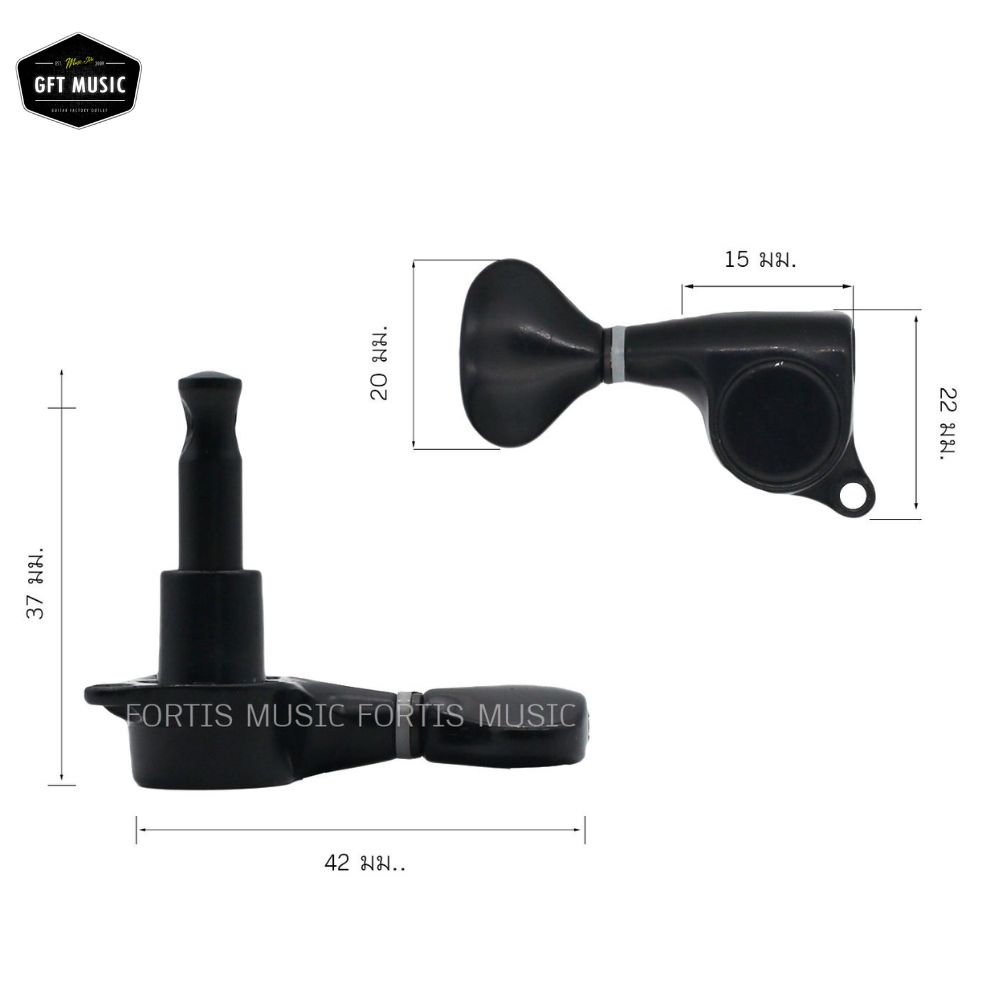 Fortis ลูกบิดกีต้าร์โปร่ง ทรง Wilkinson รมดำ แถวคู่น็อตเฉียง 1 รู Acoustic guitar machine heads แถมฟรีปิ๊กกีต้าร์2ชิ้น