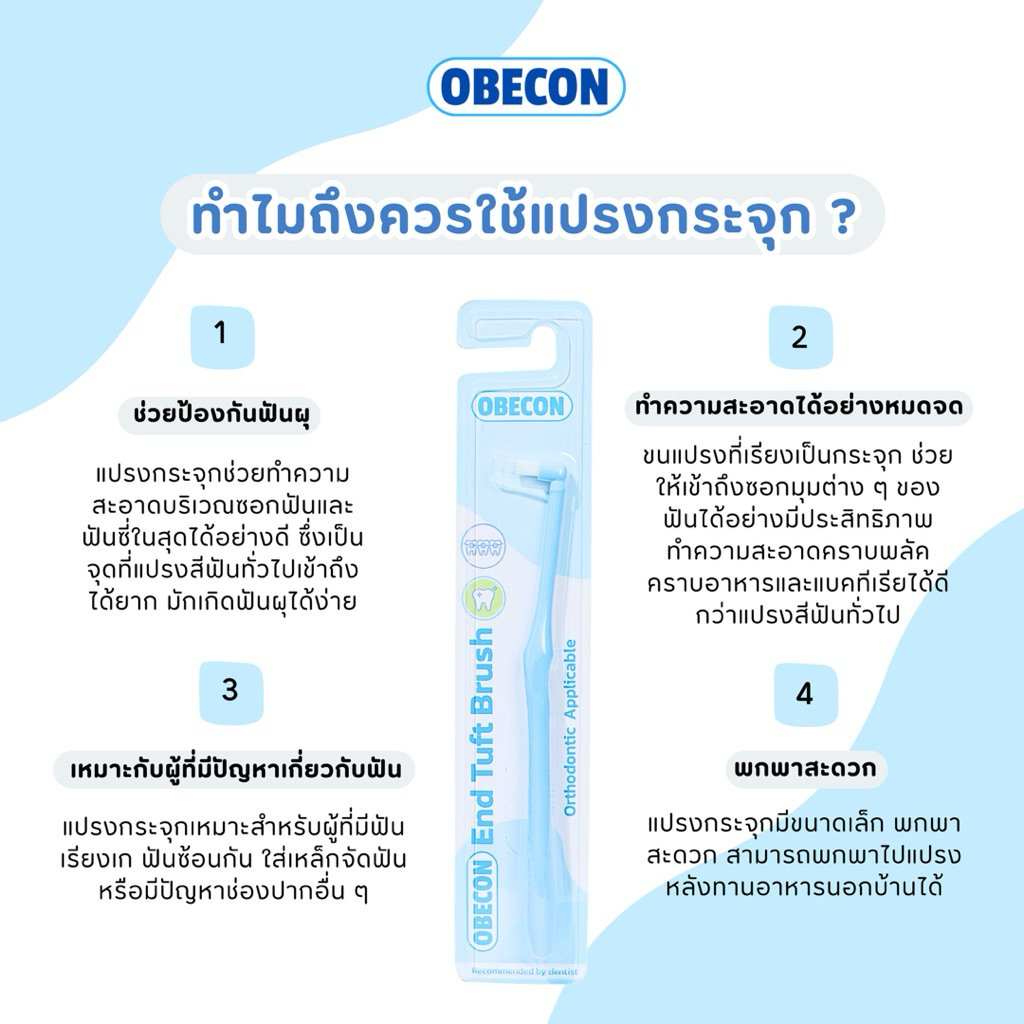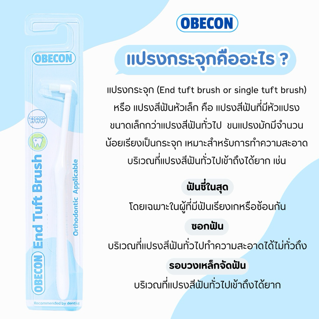 OBECON แปรงกระจุกเดียว หัวแปรงเรียบ Single Tuft Orthodontic Toothbrush แปรงจัดฟัน