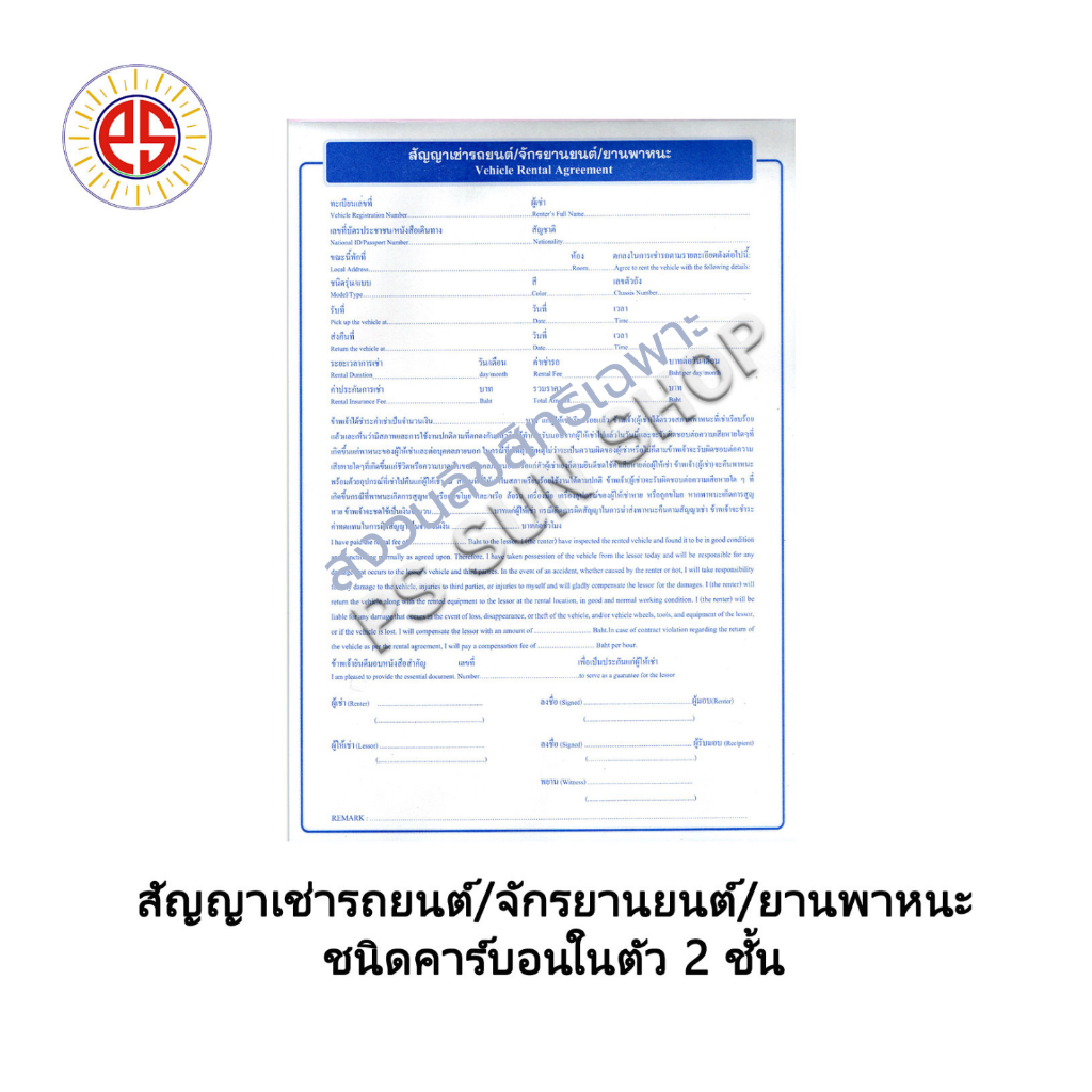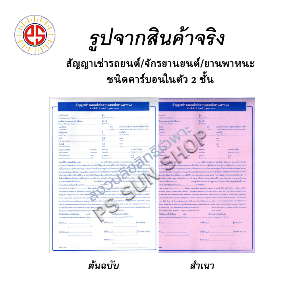10 เล่ม (ไทย/Eng) สัญญาเช่ารถยนต์ / จักรยานยนต์ / ยานพาหนะ ชนิดคาร์บอนในตัว 2 ชั้น PS SUN