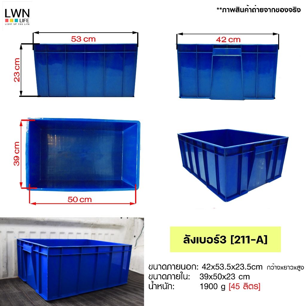 LWN Life ลังพลาสติกทึบ [42x53.5x23.5 cm 45 ลิตร] รุ่น 211-A ตะกร้าเก็บของอุตสหกรรม วางซ้อนได้ ลังจัดระเบียบเกรดA