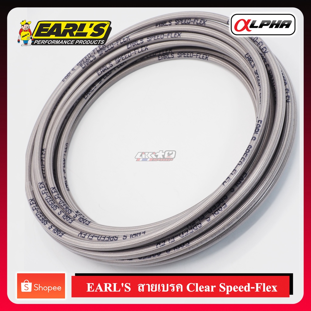 EARL'S Speed flex สายเบรคสีใสโลโก้ดำ 10,20,50นิ้ว สายเบรคคุณภาพสูง (Made in UK)