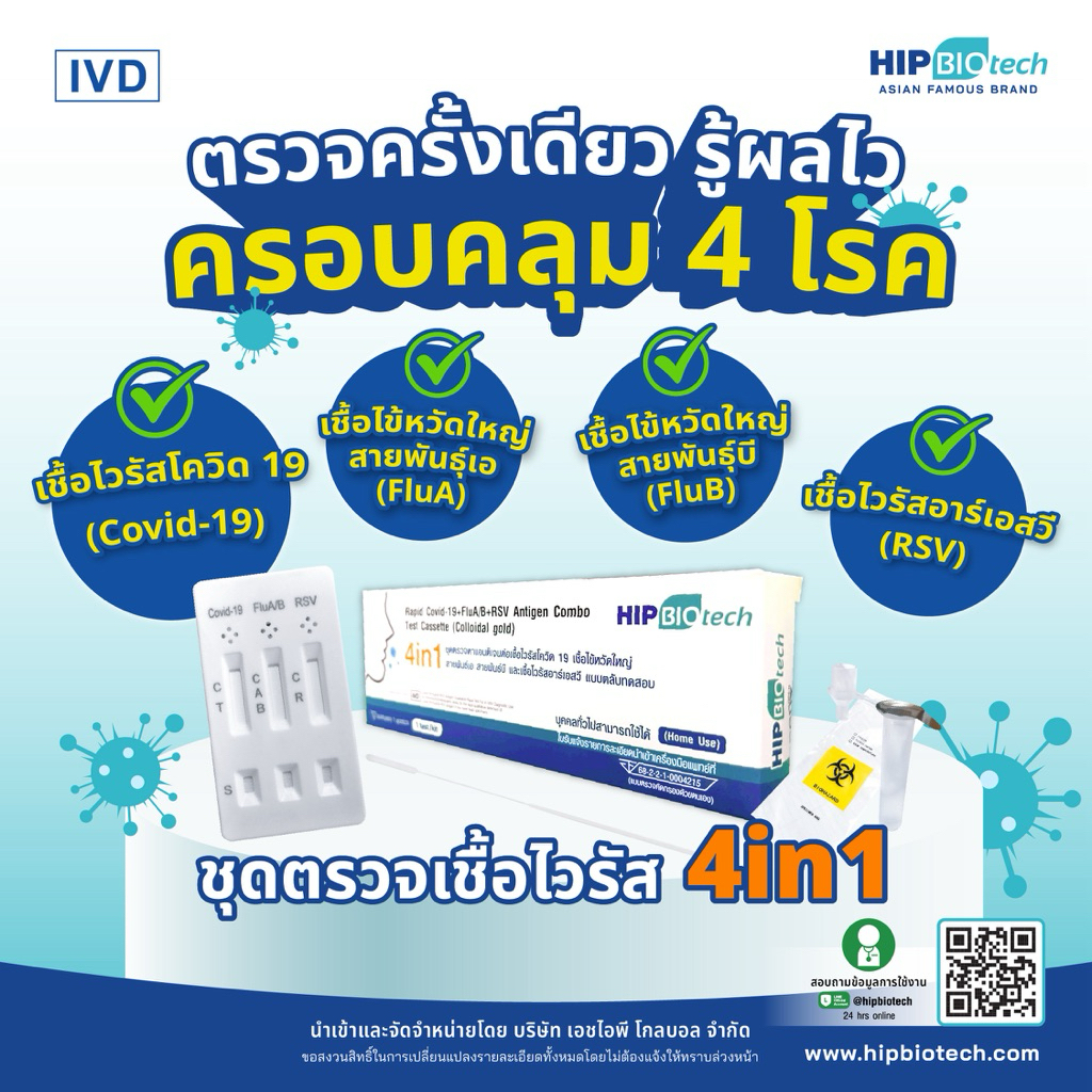 Hip 4in1 ชุดตรวจไข้หวัดใหญ่🔥Flu A/Flu B/RSV/Covid-19👍🏻ผลตรวจแม่นยำ ชุดตรวจโควิด ของแท้ 100%✅