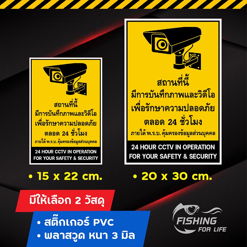ป้ายกล้องวงจรปิด CCTV รักษาความปลอดภัย ป้าย CCTV กล้องวงจรปิด บันทึกภาพและวิดีโอ 24 ชม.