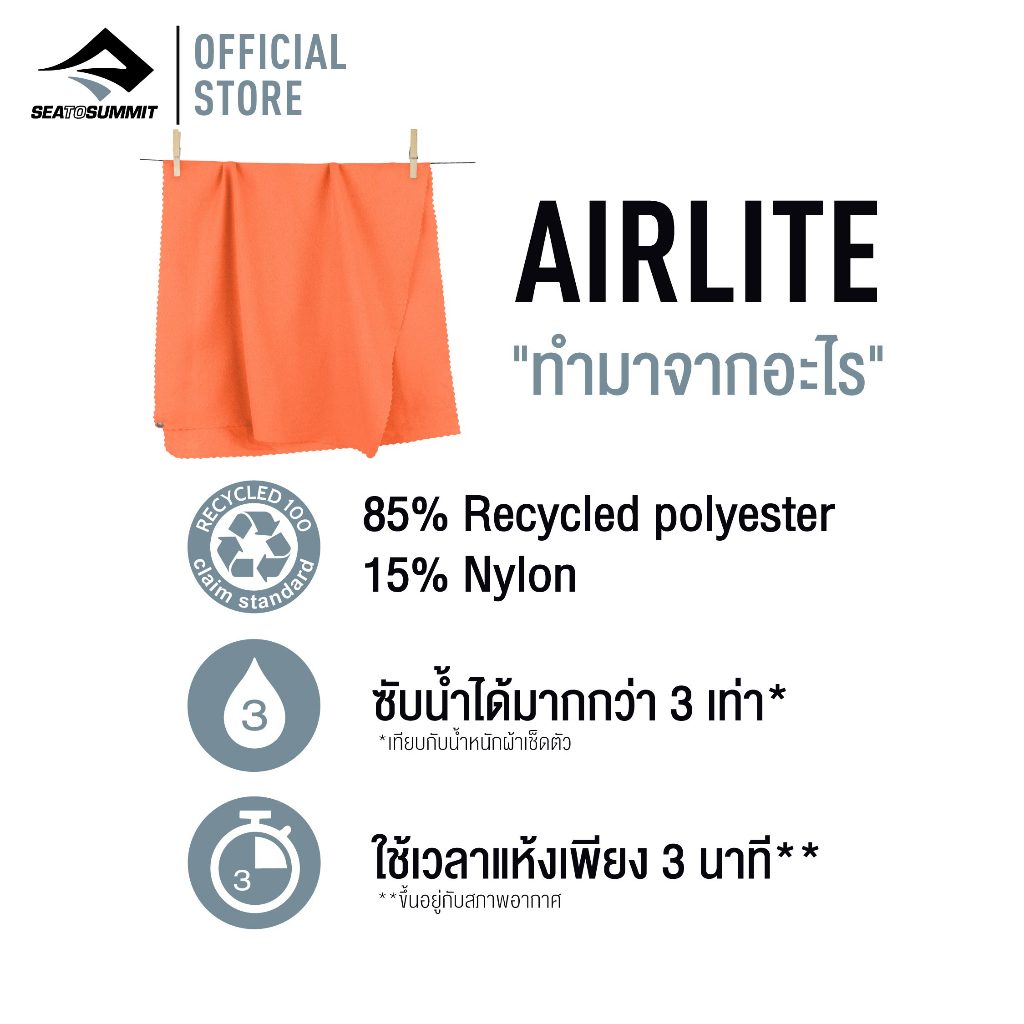 Sea To Summit AIRLITE TOWEL ผ้าเช็ดตัวแห้งไว แห้งเร็ว