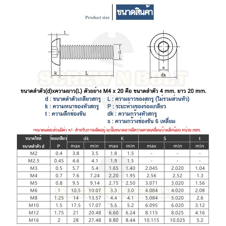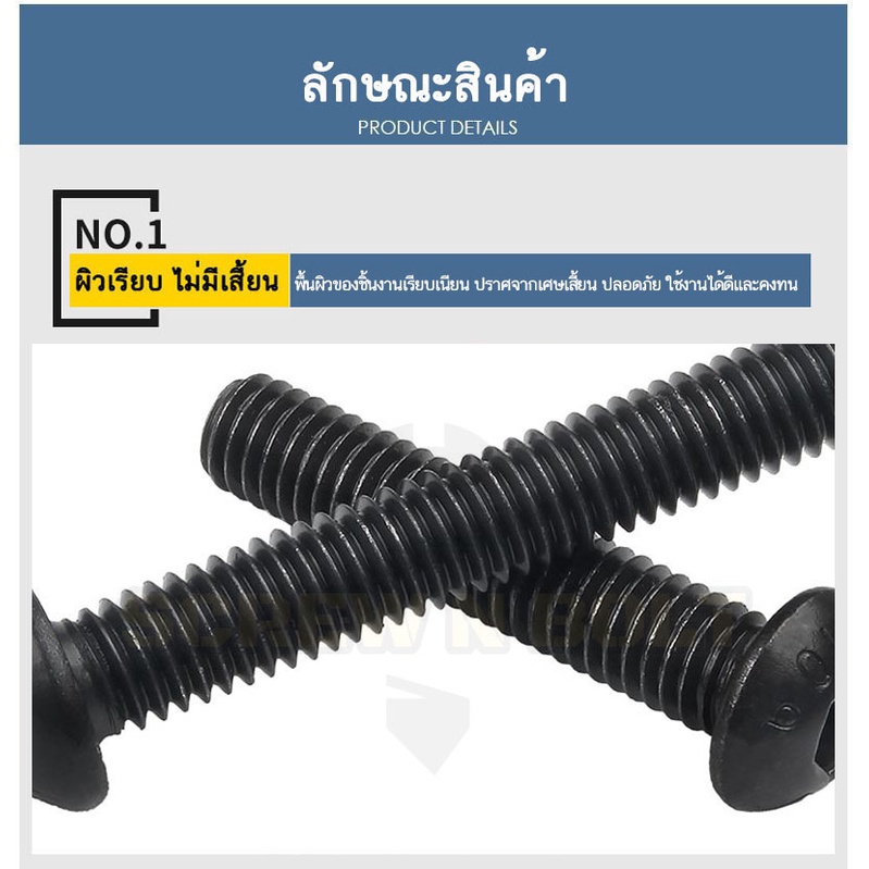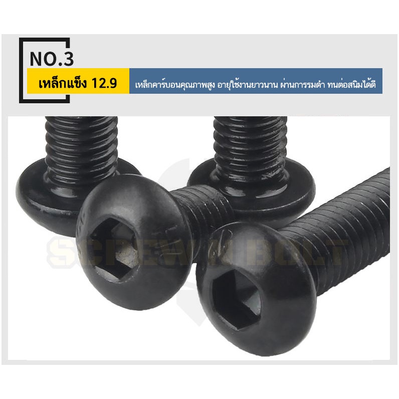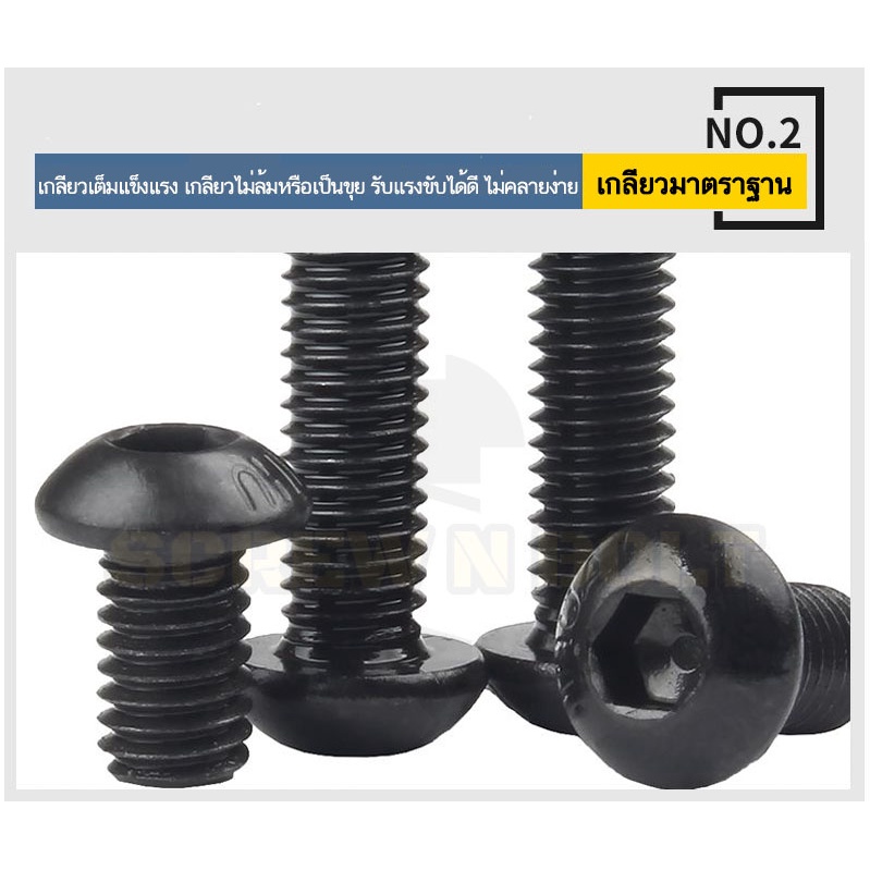 น็อต สกรู หัวจมกลม 6 เหลี่ยม เหล็กแข็ง 12.9 เกลียวมิล หยาบ M2 M2.5 M3 / Button Head Hex Socket Machine Screw Grade 12.9