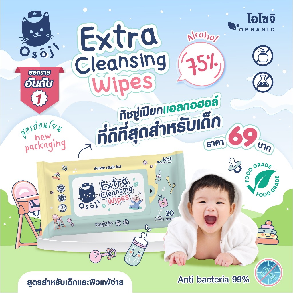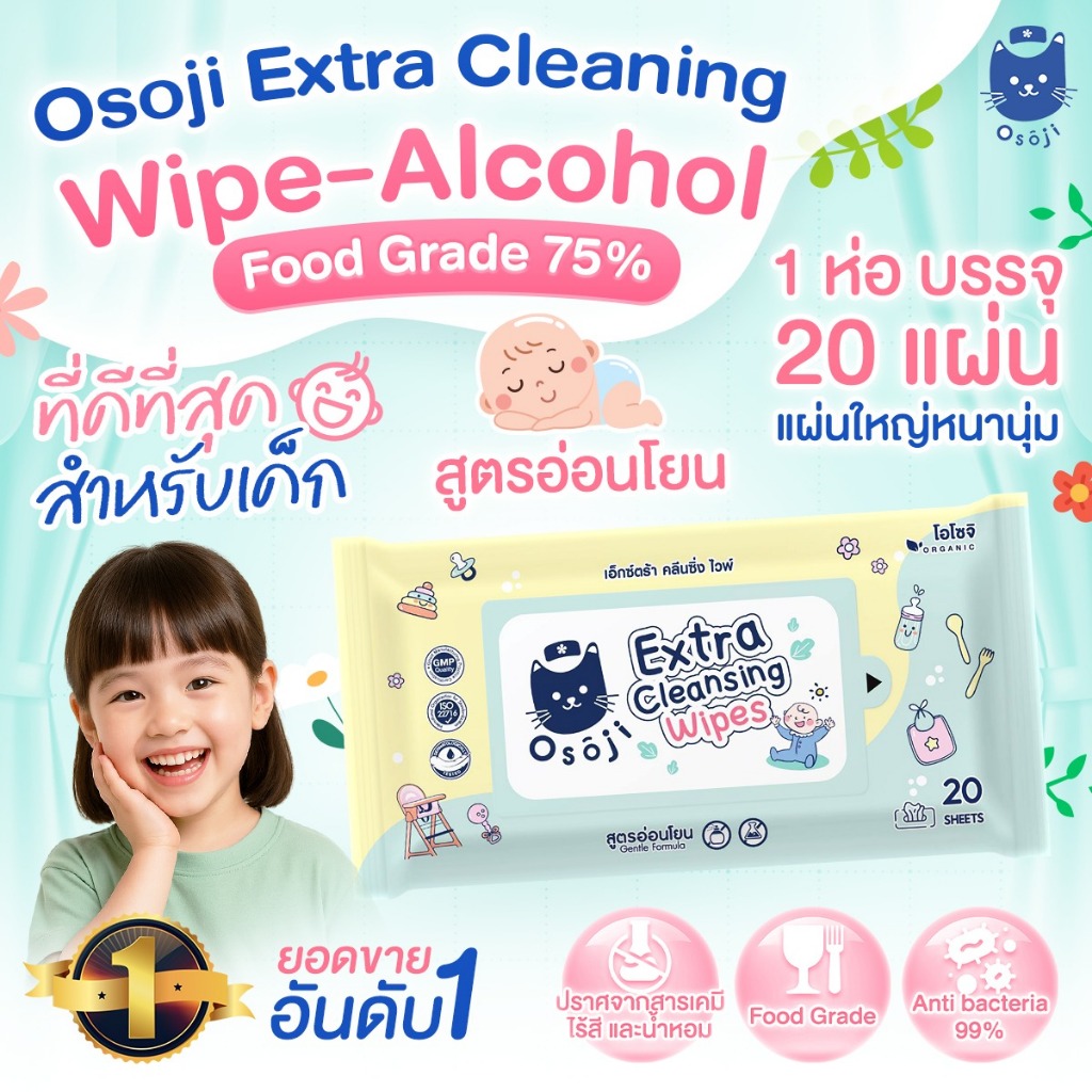 💛ทิชชู่แอลกอฮอล์ ฟู้ดเกรด75% สำหรับเด็ก20 แผ่น 10แถม2 (AW ทิชชู่แอล)