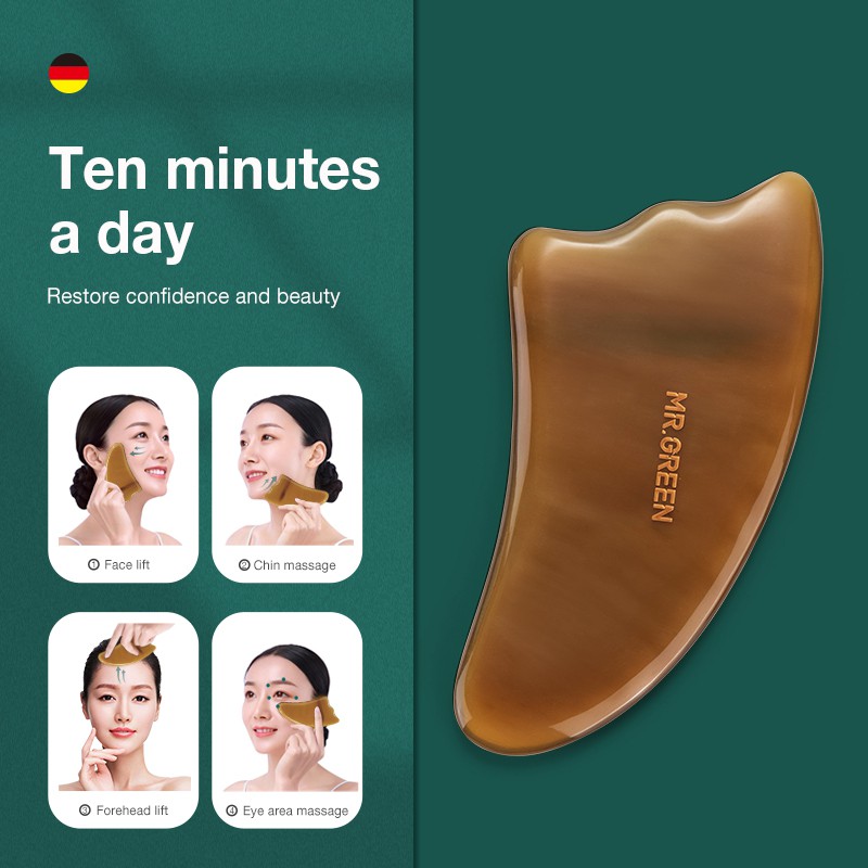 Mr.green กัวซา ขูด แผ่นนวด เขาวัว ใบหน้า คอ นวดตัว เครื่องมือความงาม สปา ดูแลผิว คอ ปวด บรรเทาอาการปวด
