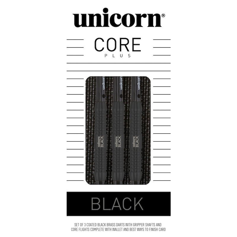 Unicorn Darts ชุดลูกดอกหัวพลาสติก รุ่นคอร์พลัสสีดำ เซ็ท 3 ชิ้น 17-19 กรัม Core Plus Black Soft Tip Set of 3 Darts 17-19