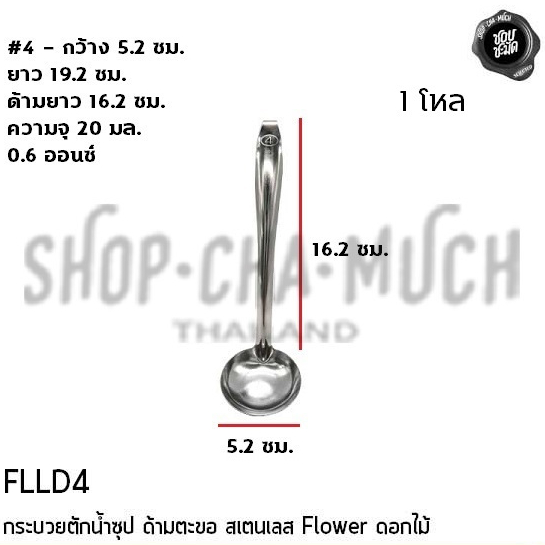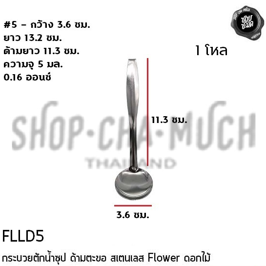 กระบวยด้ามตะขอ ตักน้ำจิ้ม สเตนเลส ดอกไม้ เบอร์ 4/5/6 - 1 โหล