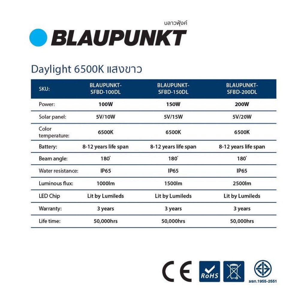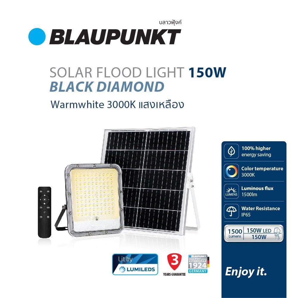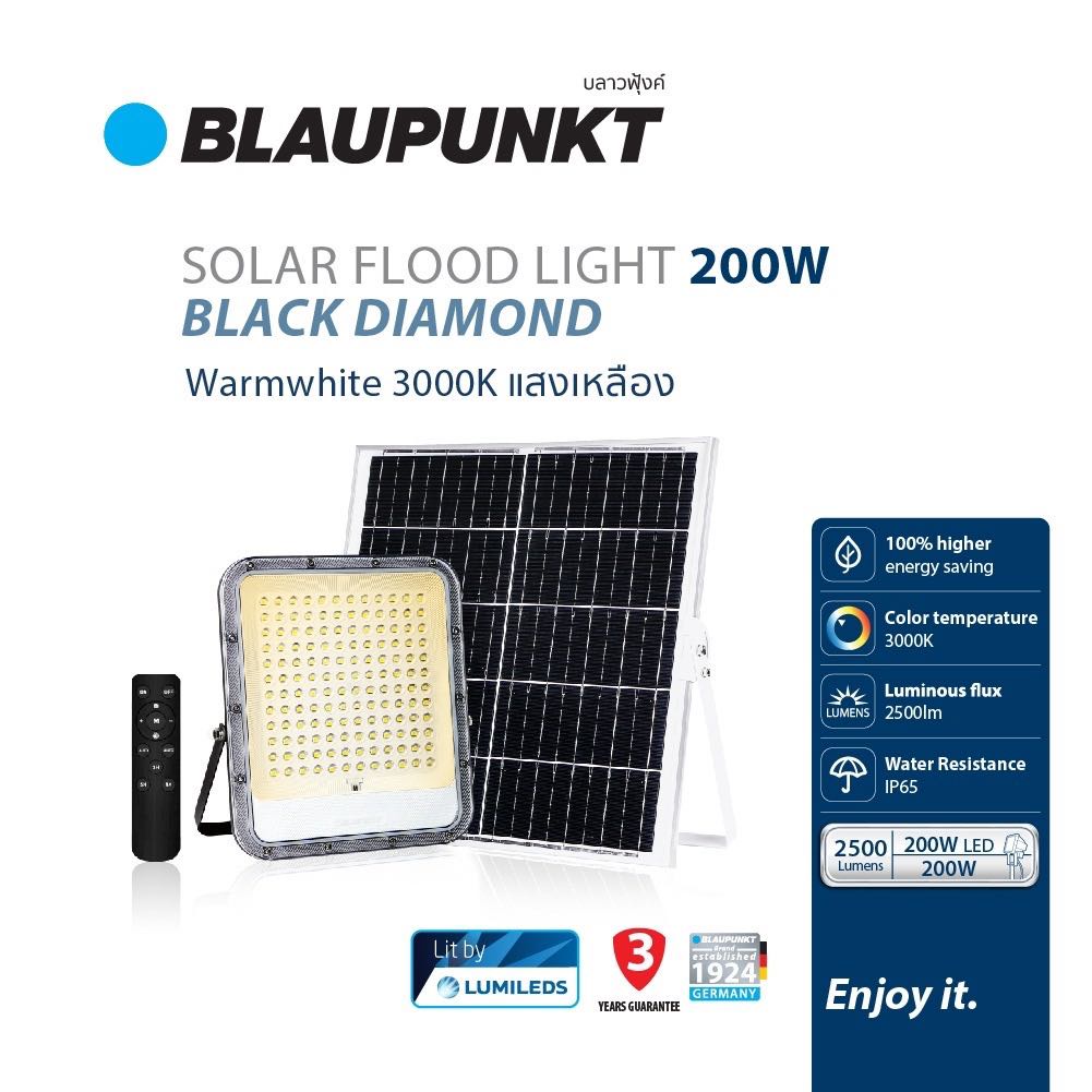 BLAUPUNKT โคมไฟฟลัดไลท์โซล่าเซลล์ มีขนาด 100W 150W 200W LED Flood Light BLACK DIAMOND มาตรฐานเยอรมัน รับประกัน 1 ปี