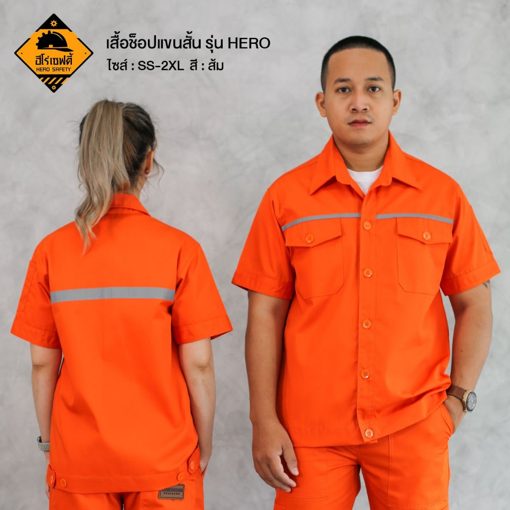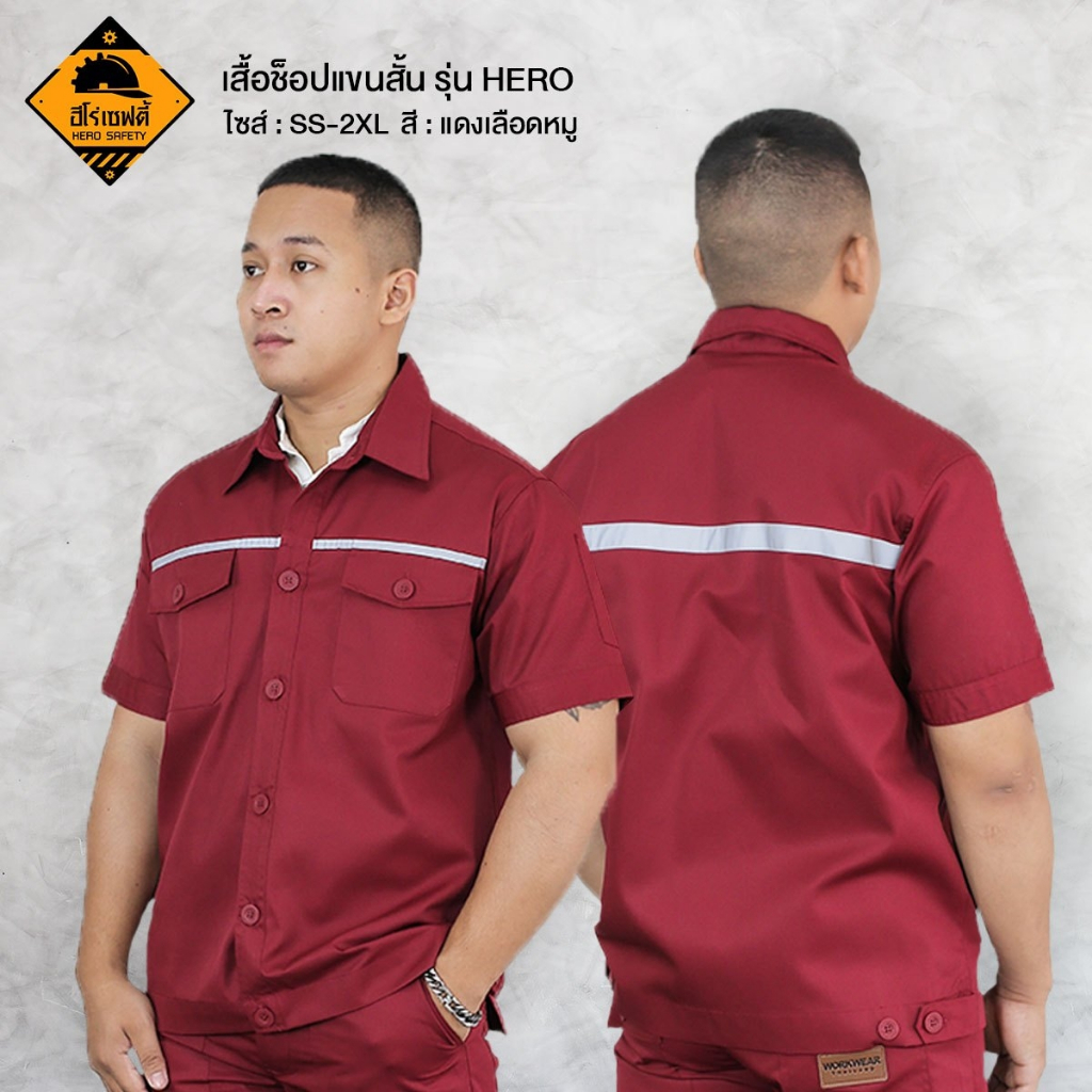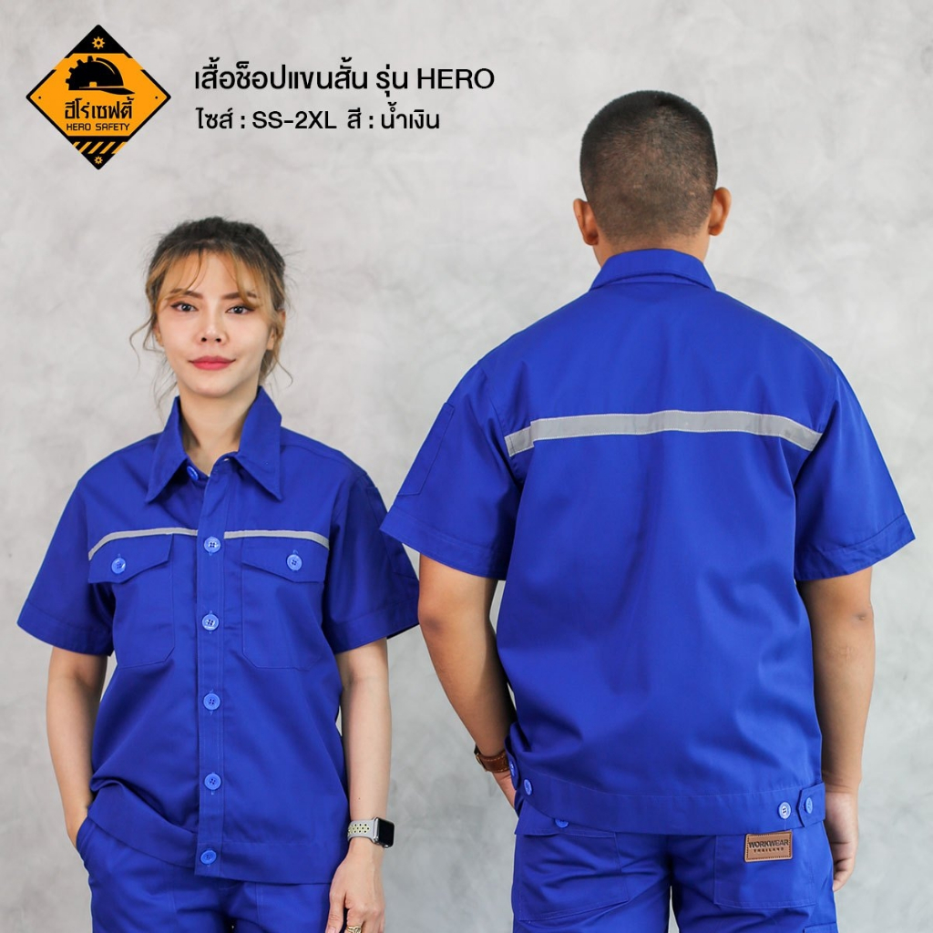 HERO SAFETY :เสื้อช็อปแขนสั้น รุ่น Hero เสื้อช่าง ทำงานช่าง ติดแถบสะท้อนแสง โทนสีเข้ม ไฟฟ้า WORKWEARTHAILAND