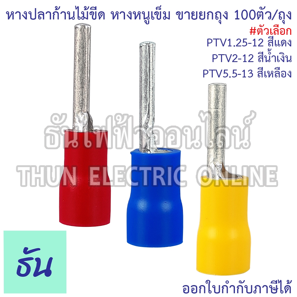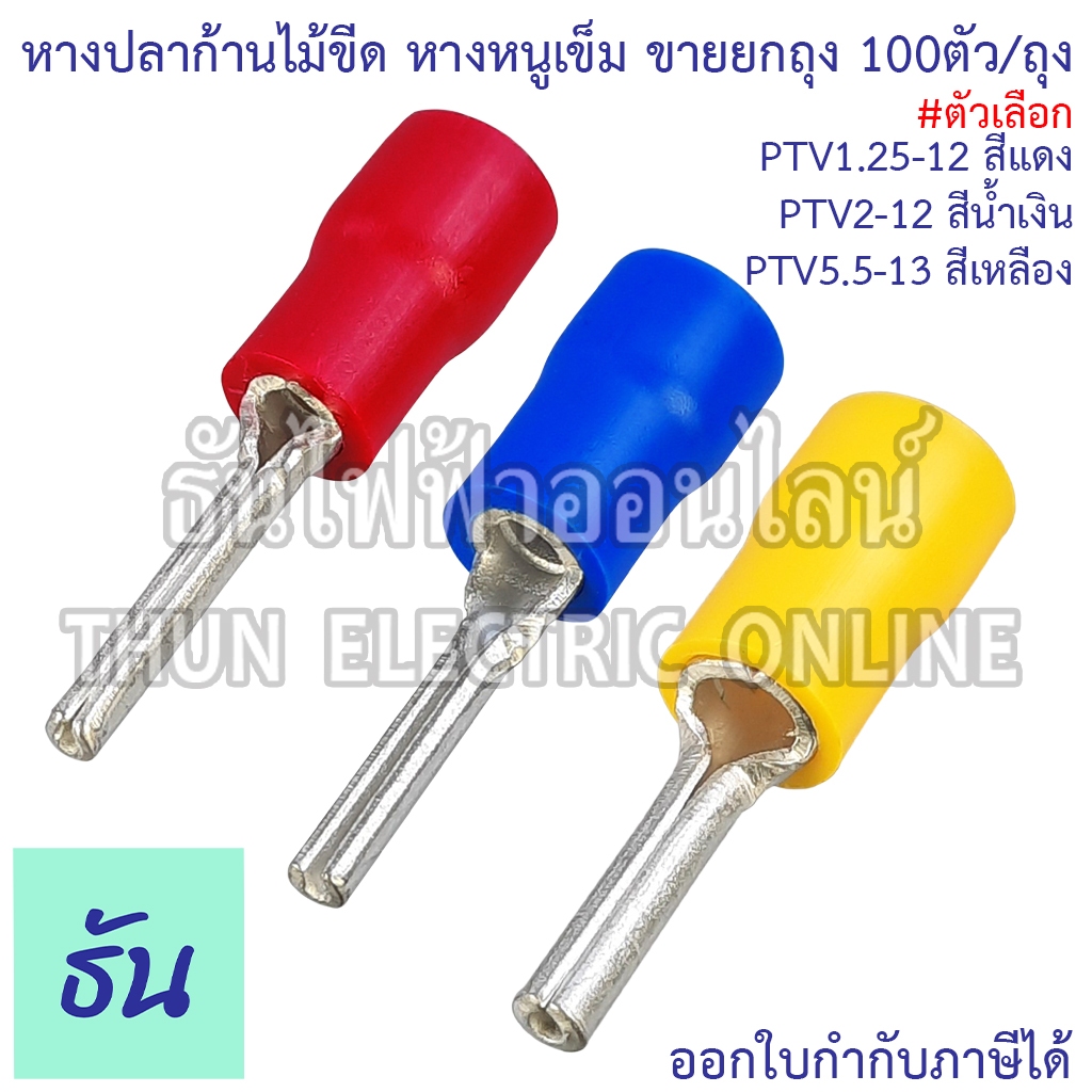 Sunmoon หางปลาก้านไม้ขีด แบบกลมหุ้ม หางหนูเข็ม ตัวเลือก PTV1.25-12 (สีแดง), PTV2-12 (สีน้ำเงิน), PTV5.5-13 (สีเหลือง)