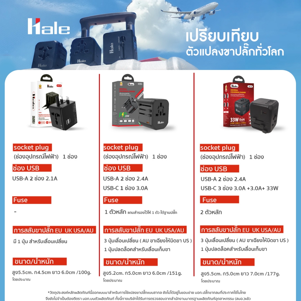Hale ตัวแปลงขาปลั๊กต่างประเทศ ใช้ได้กับปลั๊กทั่วโลก ปลั๊กไฟต่างประเทศ US/AU/EU/UK Conventer univers