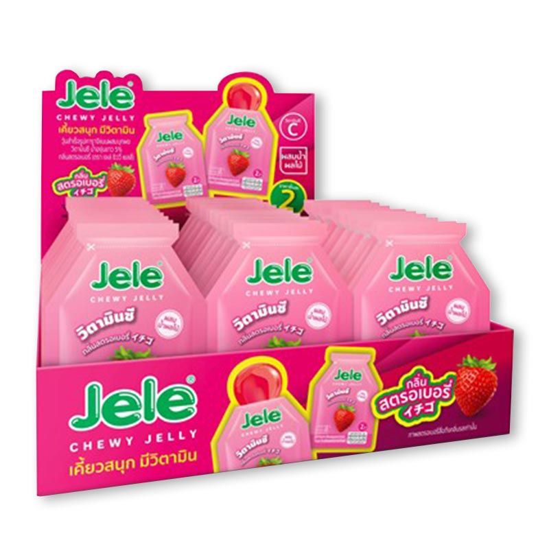 Jele Chewy Jelly เจเล่ชิววี่ เยลลี่ผสมบุก 0 แคลอรี่ เคี้ยวหนึบ อร่อย สดชื่น วิตามินซีสูง 18 กรัม 1 กล่อง บรรจุ 30 ชิ้น