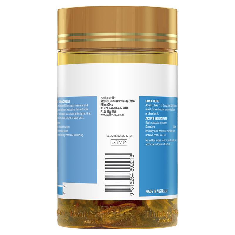 Healthy Care Squalene 1000mg 200 Capsules น้ำมันตับปลาฉลามน้ำลึก