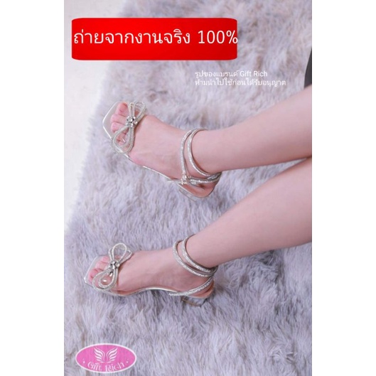 (แบรนด์ไทย) GiftRich No.10 Calista รุ่นโบว์เพชรรัดข้อ ((ส้น 2 นิ้ว)) สวยหรูหรา เดินสบาย