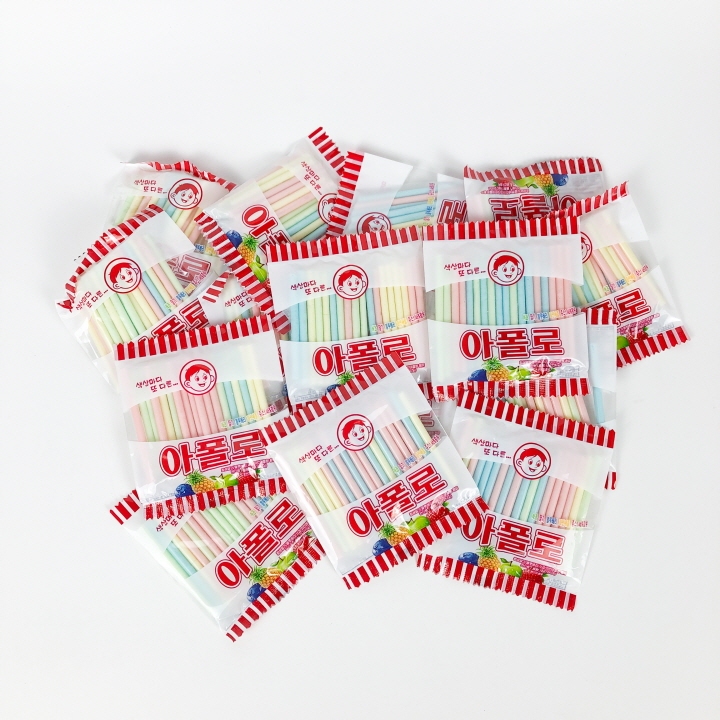 APOLLO STRAW CANDY ขนมหลอดโบราณ ลูกอมแท่งรสผลไม้ 아폴로 ลูกอมแท่ง ลูกอมหลอด อพอลโล