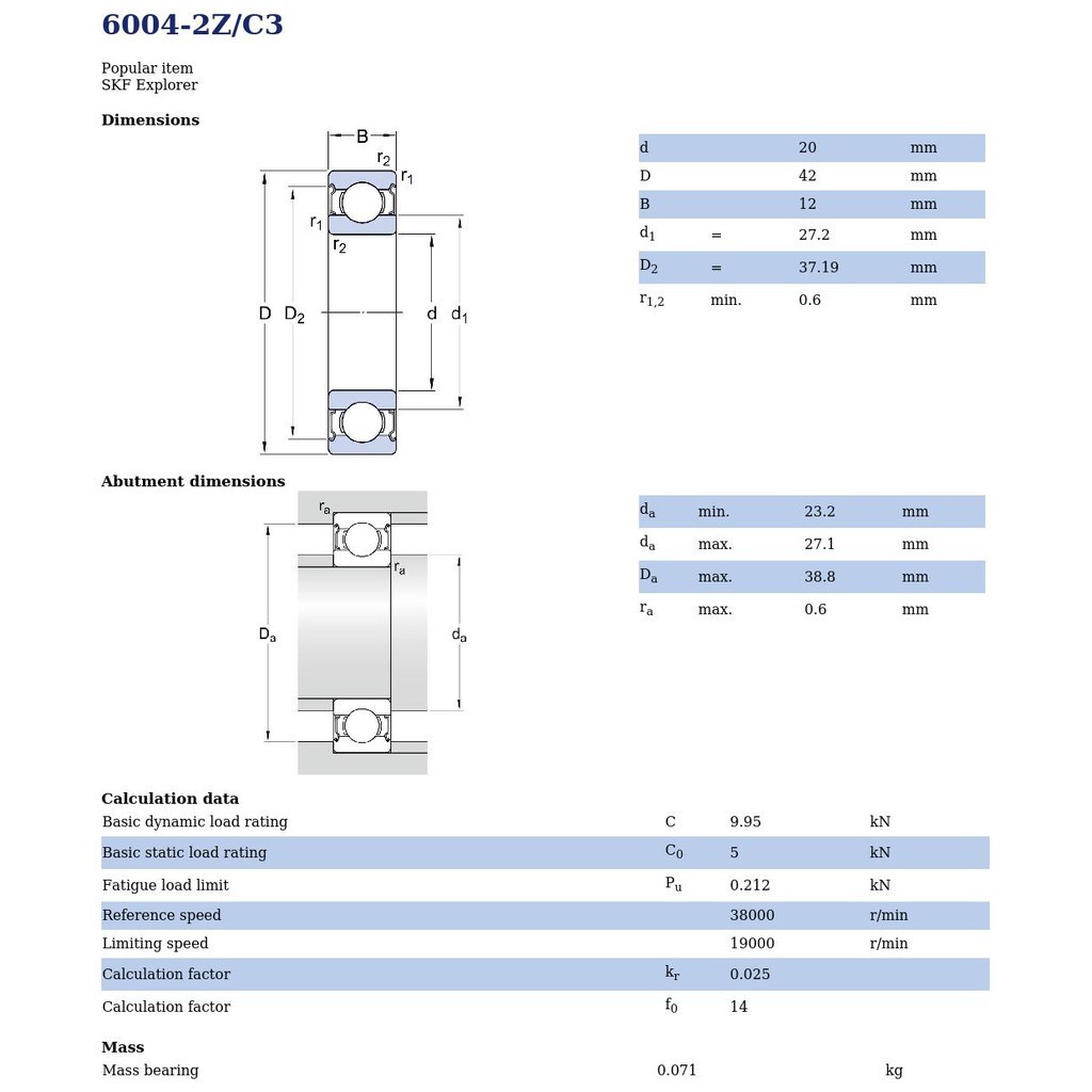 6004-2Z/C3 SKF ตลับลูกปืนเม็ดกลมล่องลึก ฝาเหล็ก รองรับความเร็วรอบและความร้อนสูง 6004 2Z C3 (20mm x 42mm x 12mm)