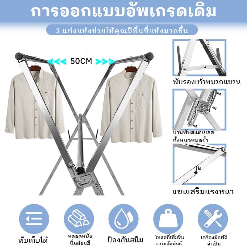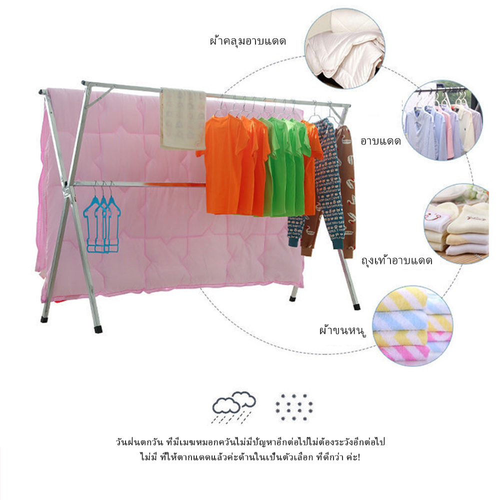 ราวตากผ้า พับได้ 304 สแตนเลสรุ่น พับเก็บง่าย ยืดหดได้ ราวตากผ้า ราวตากผ้าพับได้ ราวตากผ้าตัว X Drying Rack