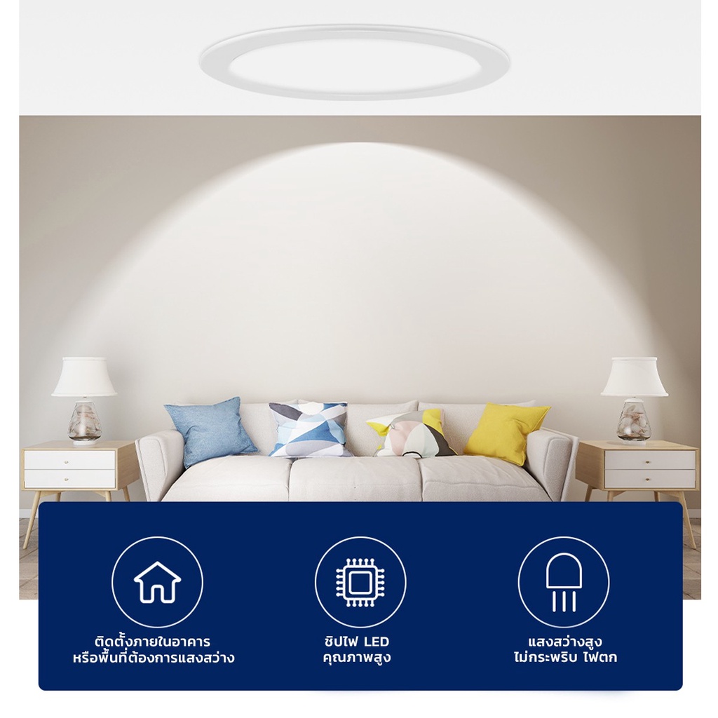โคมฝังฝ้า โคมติดเพดาน กลม ยี่ห้อ IWACHI รุ่น LED PANEL LIGHT 6W 9W 12W 18W 24W มีหลายขนาด มีแสงขาว และ วอร์มไวท์