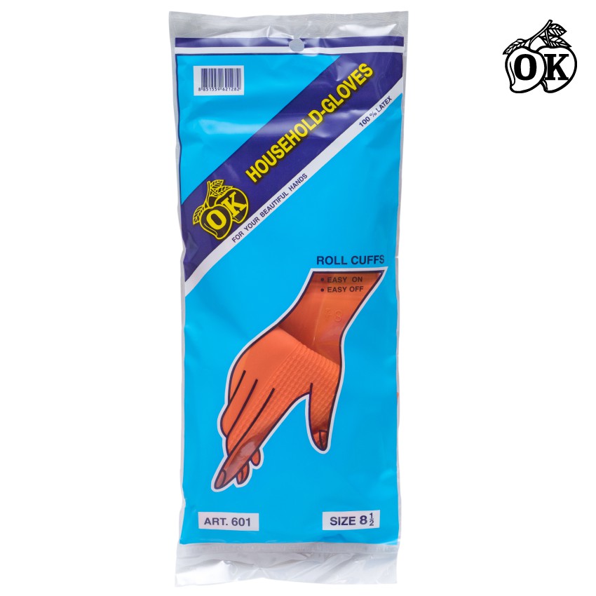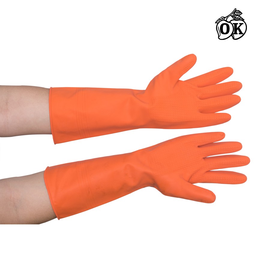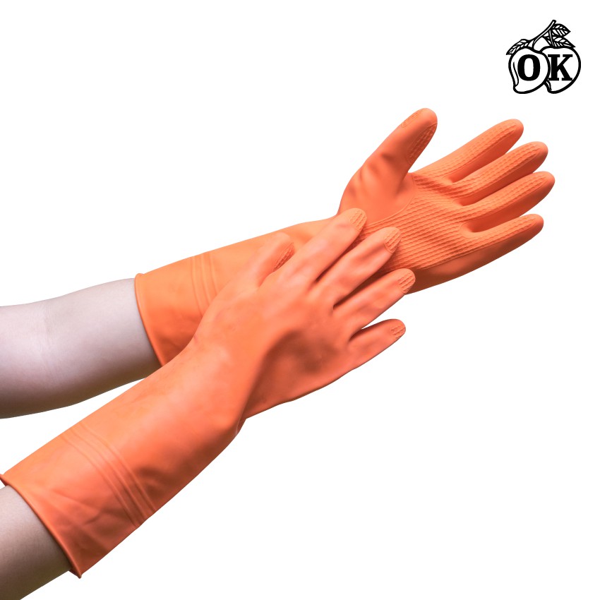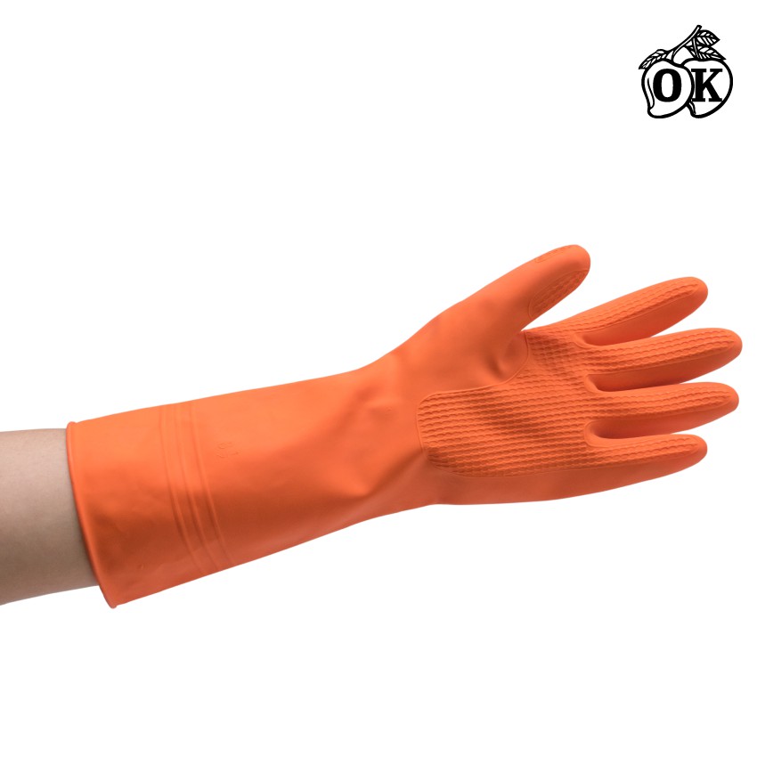 ถุงมือแม่บ้านOKสีส้ม เบอร์8.5,ถุงมือเอนกประสงค์,ถุงมือยางธรรมชาติสีส้ม(12คู่) RUBBER GLOVES