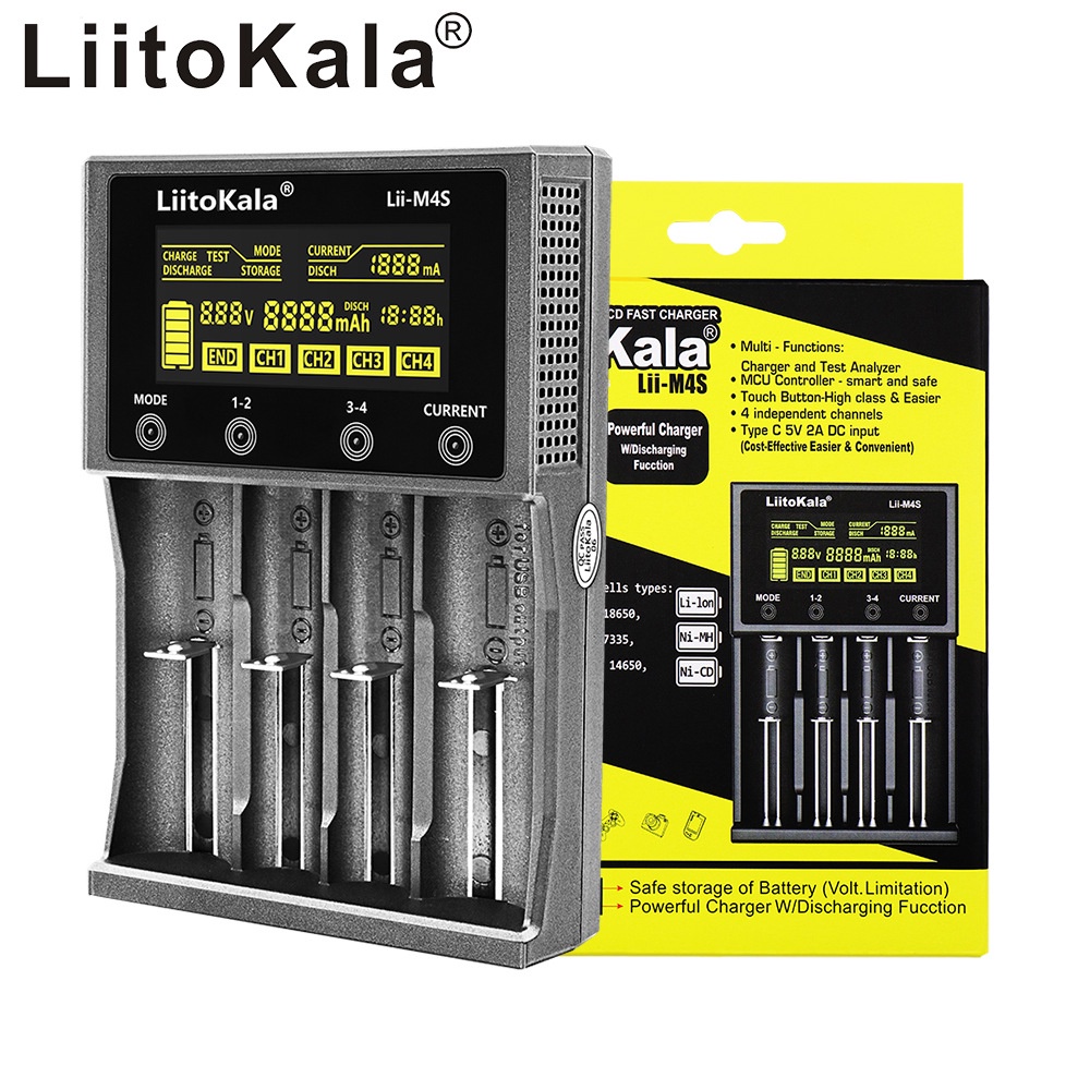 เครื่องชาร์จถ่าน LiitoKala Lii-M4S รองรับ 26650,21700,20700, 18650, 18490, 18350 AA AAA - Battery Charger(ของแท้100%)
