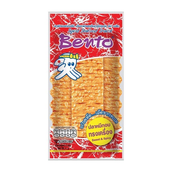 Bento เบนโตะ Squid Mixed Surimi Bento Brand ปลาหมึกอบกรอบปรุงรส ตรา เบนโตะ ขนาด 4 กรัม