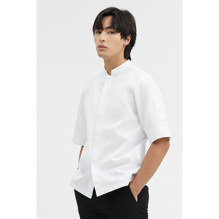 dapp Uniform เสื้อเชฟ เสื้อกุ๊ก แขนสั้น คอจีน รุ่น Nick สีขาว (TJKW1819DPS)
