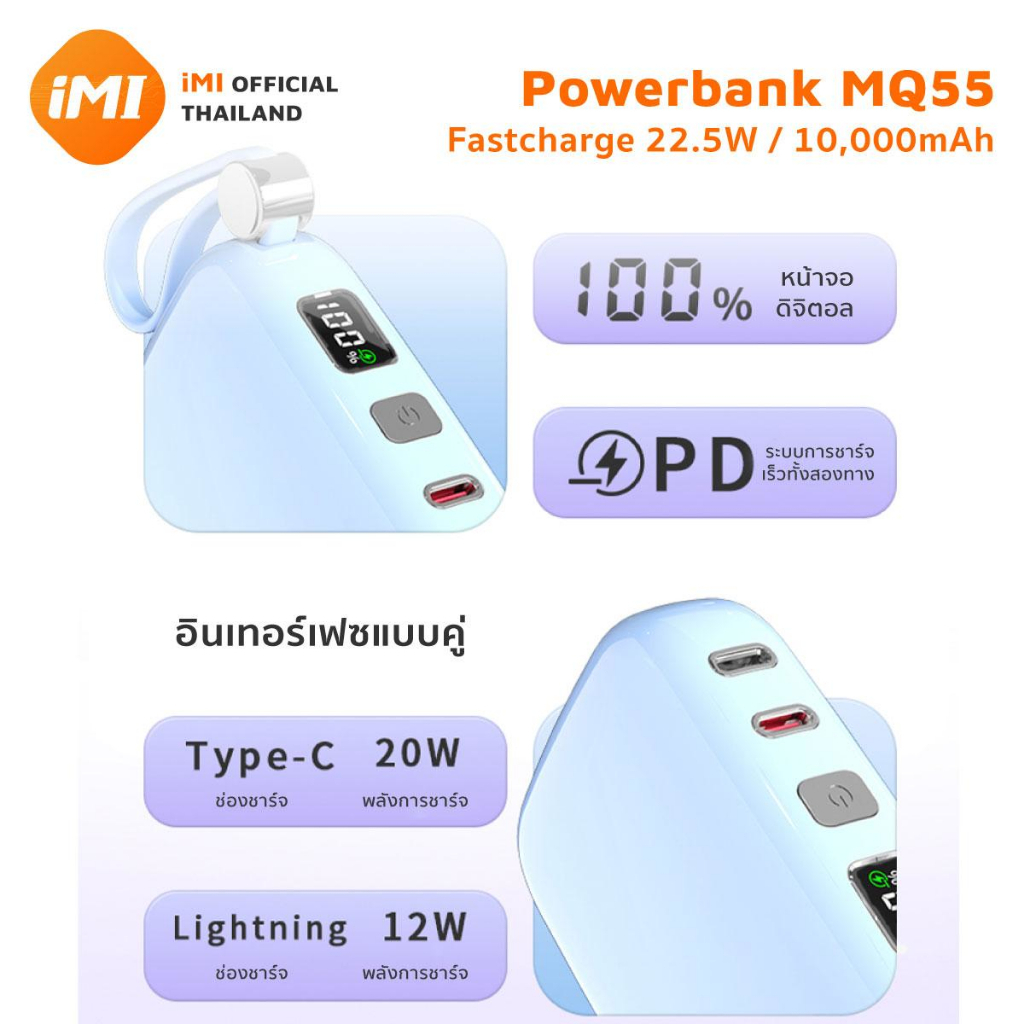 iMI Power bank 10000mah fast charge PD20W+22.5W พาวเวอร์แบงค์ สายในตัว เล็ก เบา แบตสำรอง ประกัน1ปี
