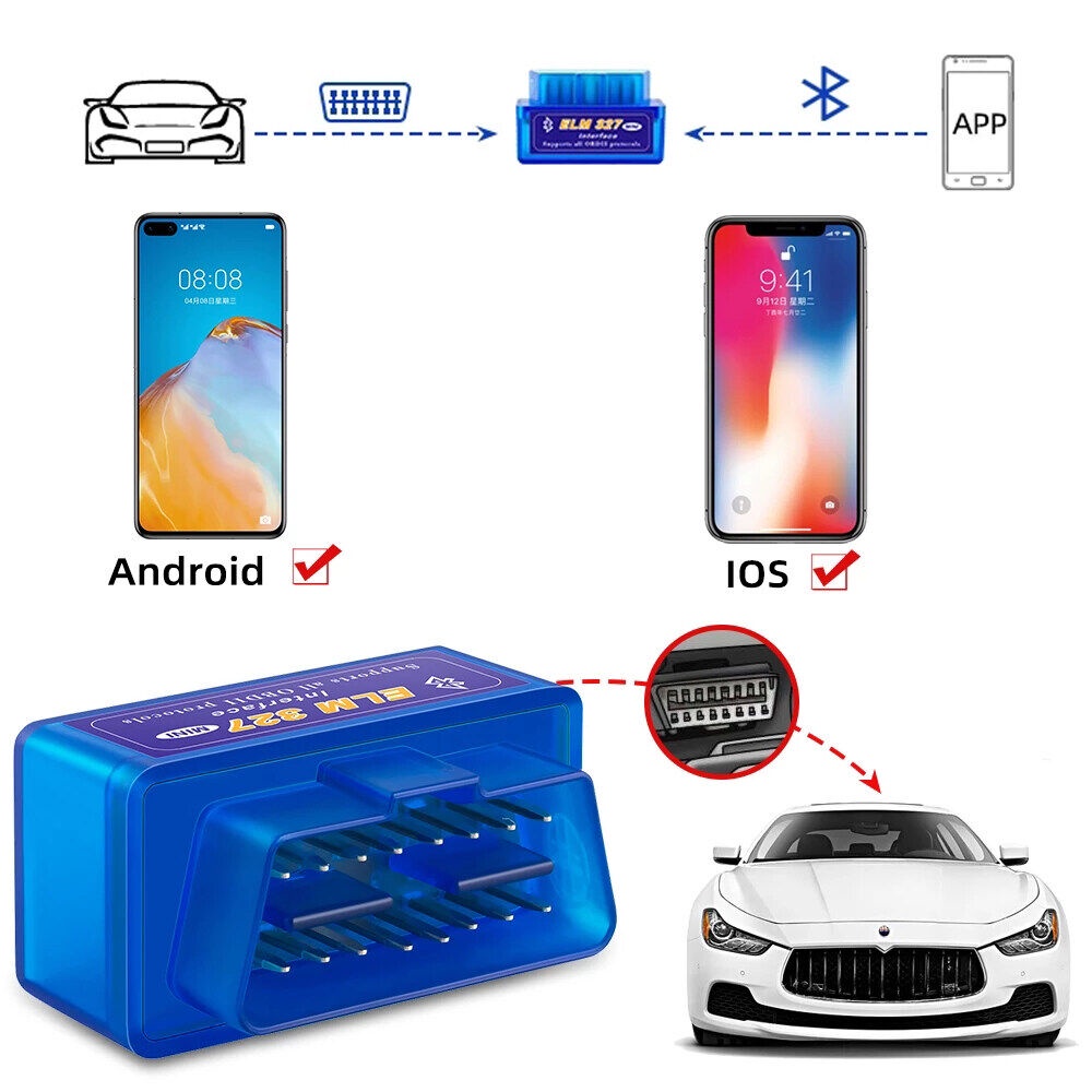 【💥กรุงเทพ เดลิเวอรี่💥】Mini ELM327 OBDII OBD2 บลูทูธสเเกนรถ สำหรับ IOS Android Devices V2.1 เครื่องสแกนรถยนต์