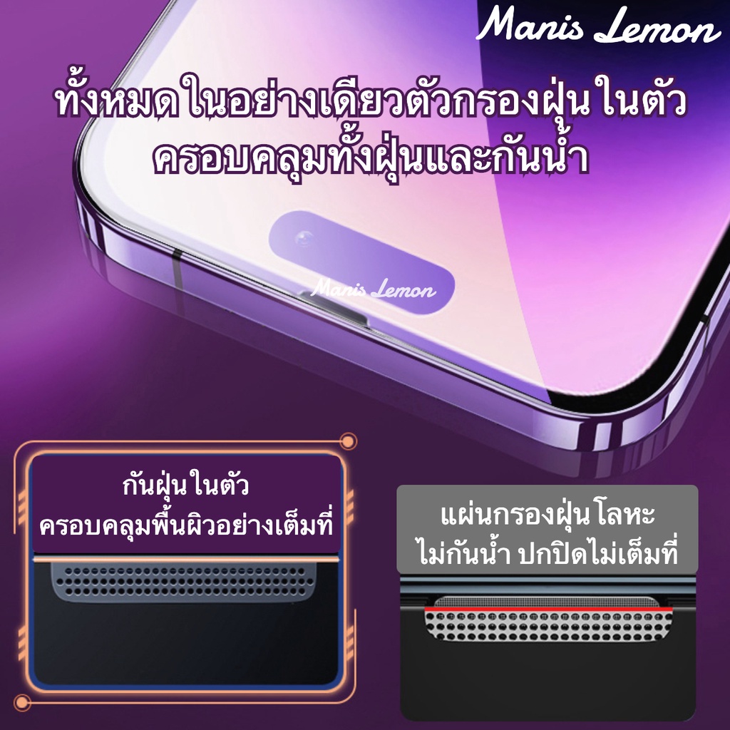 Manis Lemon บูรณาการ กับแผ่นกรองฝุ่น ฟิล์มกระจก for iPhone 17 16 15 14 13 12 Pro Max Plus Air ฟิล์มกันรอย สำหรับ ไอโฟน