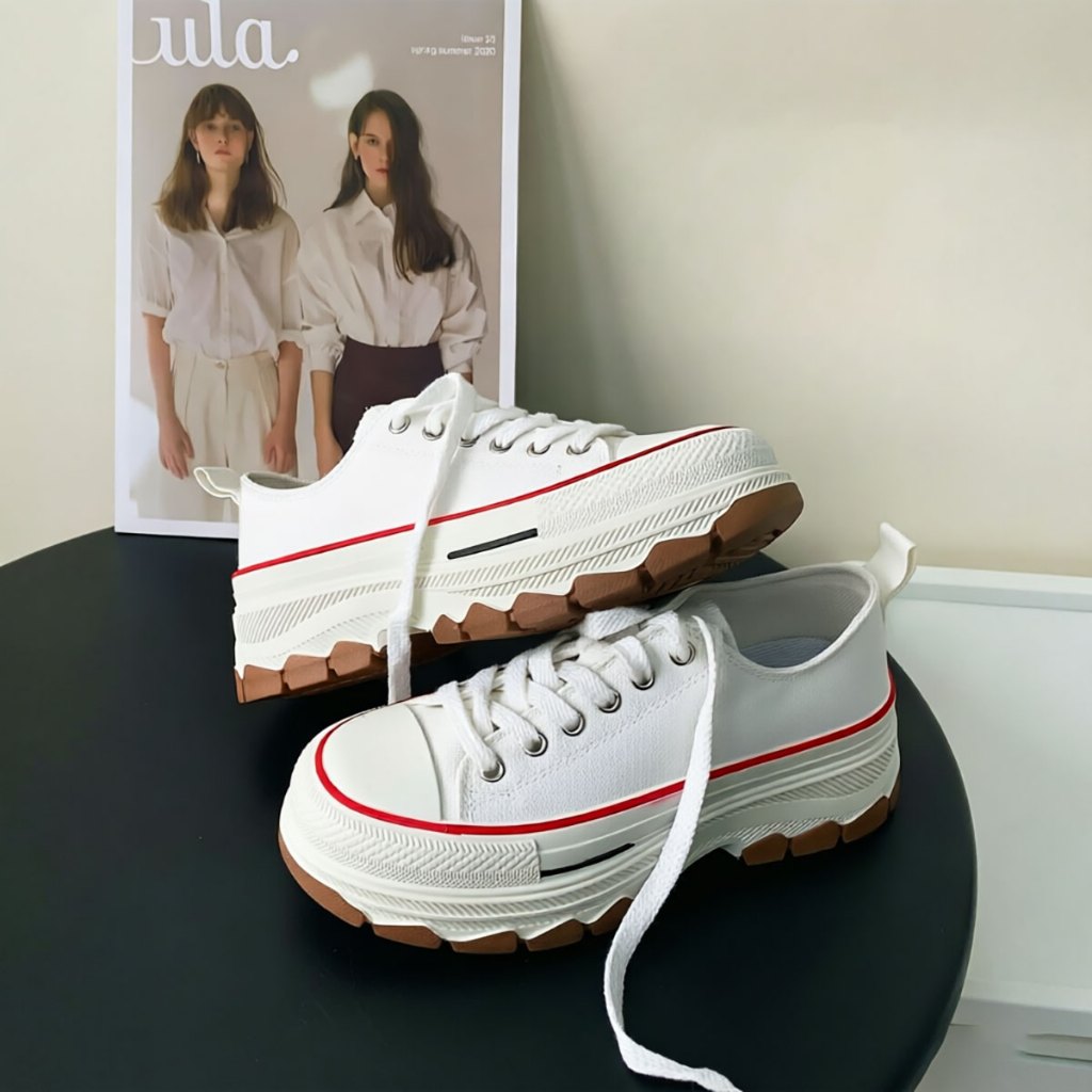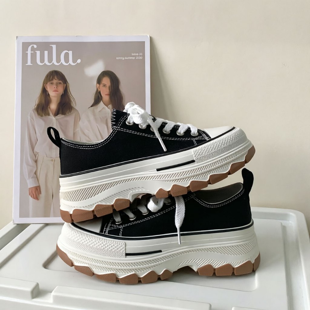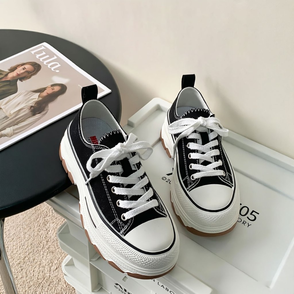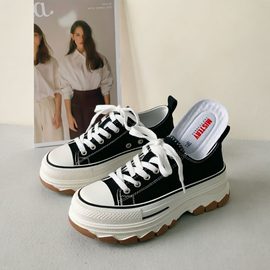 MiSTERY รองเท้าผ้าใบผู้หญิงนักเรียนผ้าใบเพิ่มสูง 5cm รุ่น RUN STAR สีดำ MIS-1234