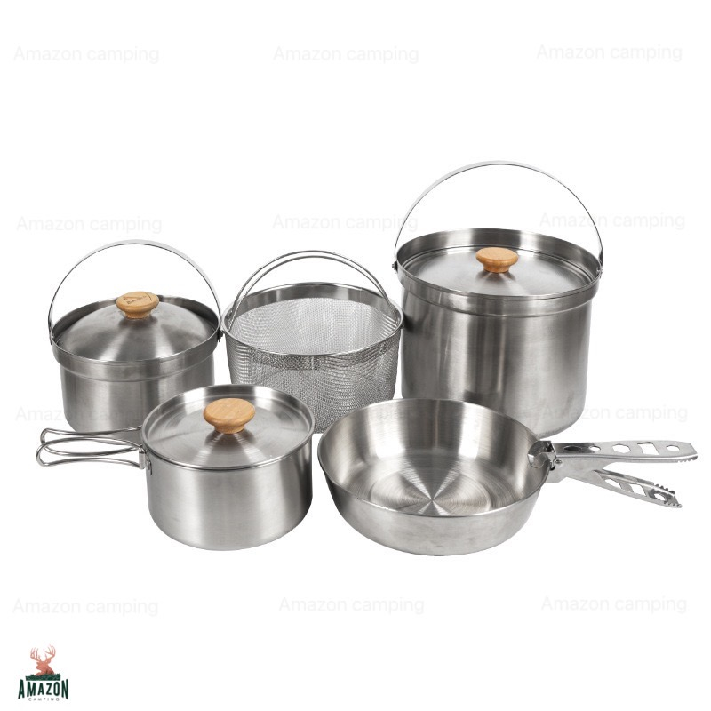 Nobana ชุดหม้อแคมป์ปิ้ง สแตนเลส 304 ครบชุด พร้อมกระเป๋า พกพาได้ หม้อสนาม Outdoor Camping Cookware