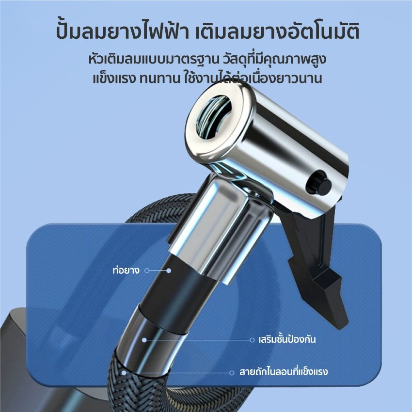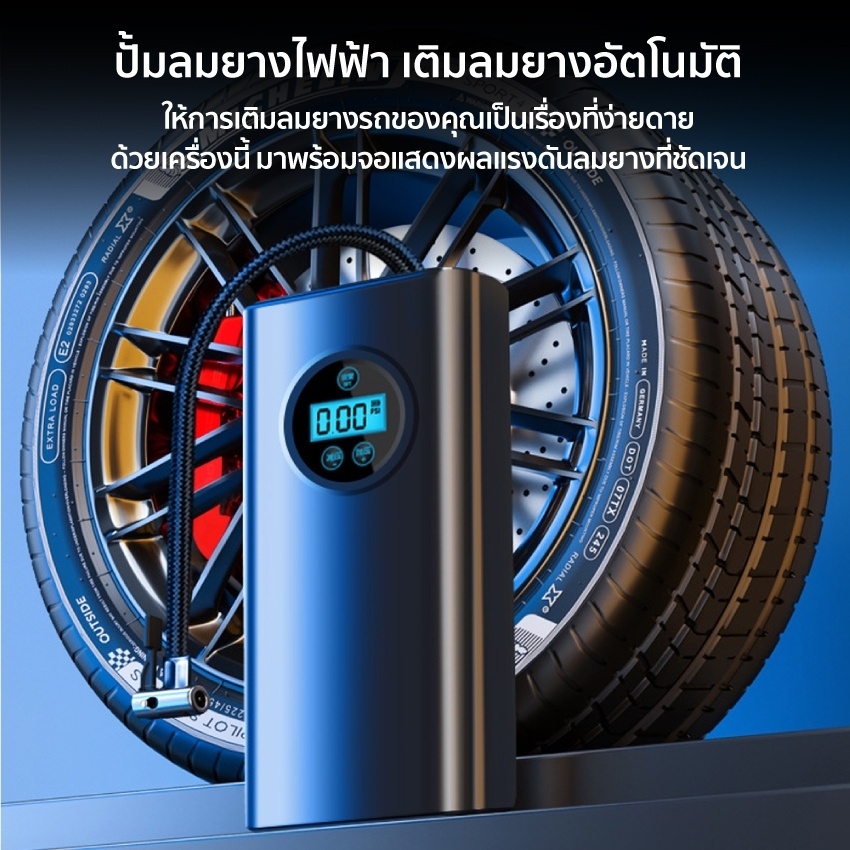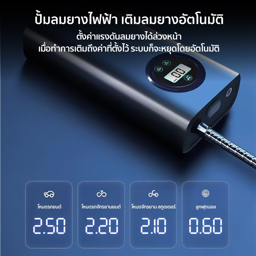 Portable Electric Air Pump ปั๊มลมไฟฟ้า พกพาสะดวก 150PSI อัตโนมัติ เติมลมยางรถ/มอไซค์ สูบลมอัตโนมัติ